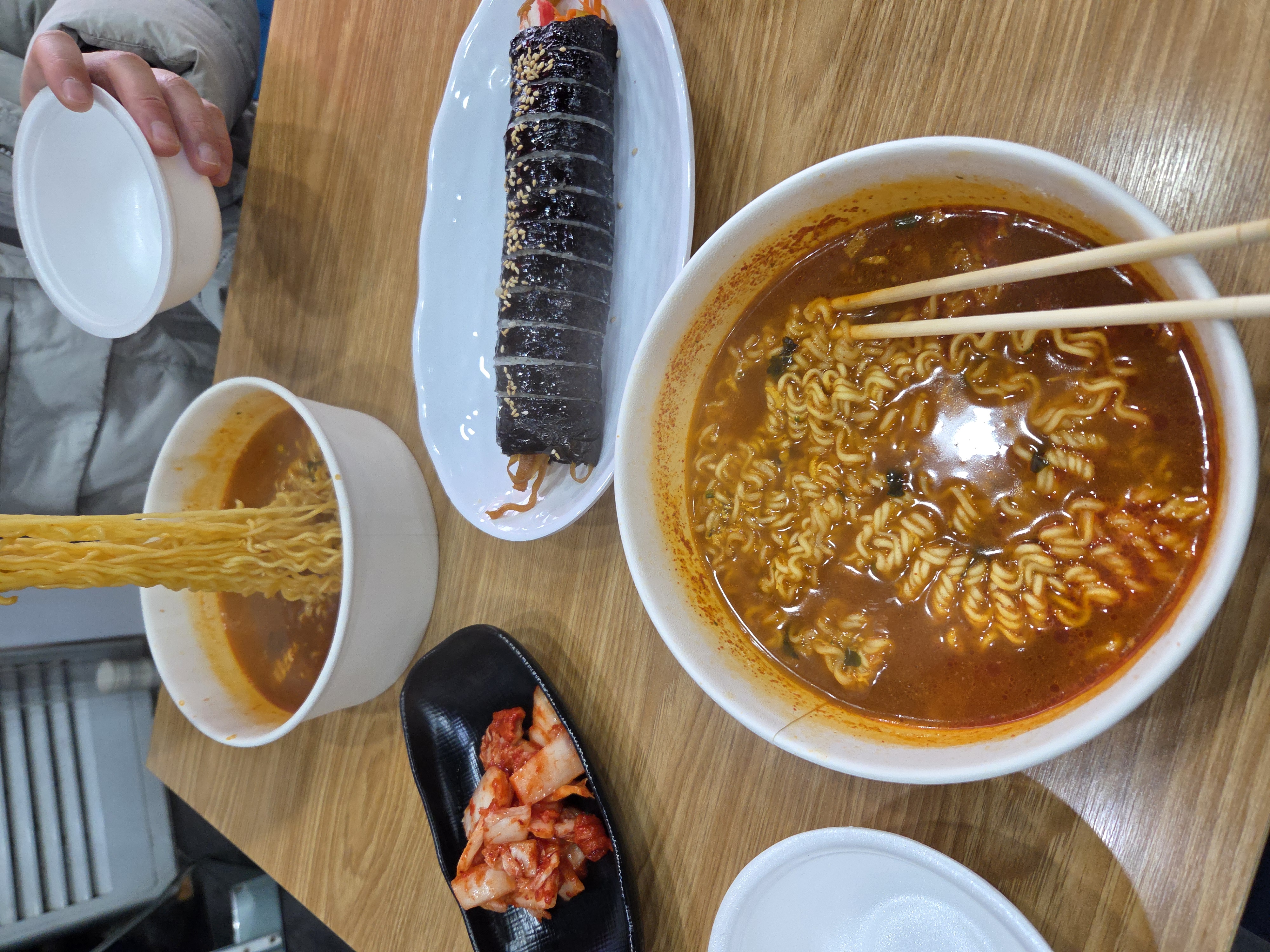 그렇게 인천 여객터미널 공영주차장에 차를 대고 (자리 모자라니까 일찍 일찍 가세요) 근처 라면집에서 아침을 먹었다.