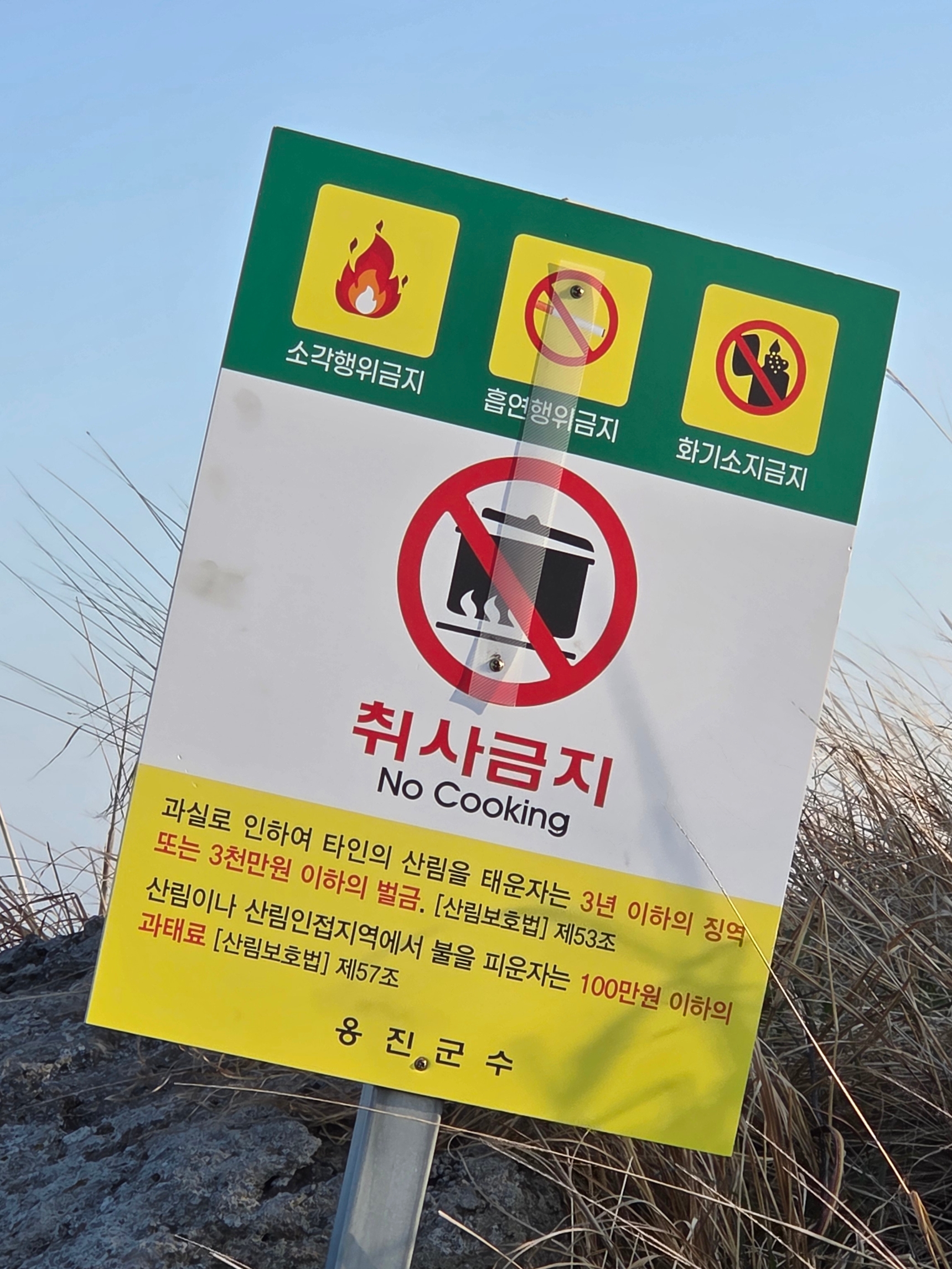 굴업도는 취사 금지입니다불나기 좋은 환경이므로 화기를 가져가지 마세요 2025.05.06 - [캠핑,여행관련/백패킹과 캠핑] - 초보의 풍속10 굴업도 백패킹 도전 (1) 인천여객터미널,옹진훼미리호,이장