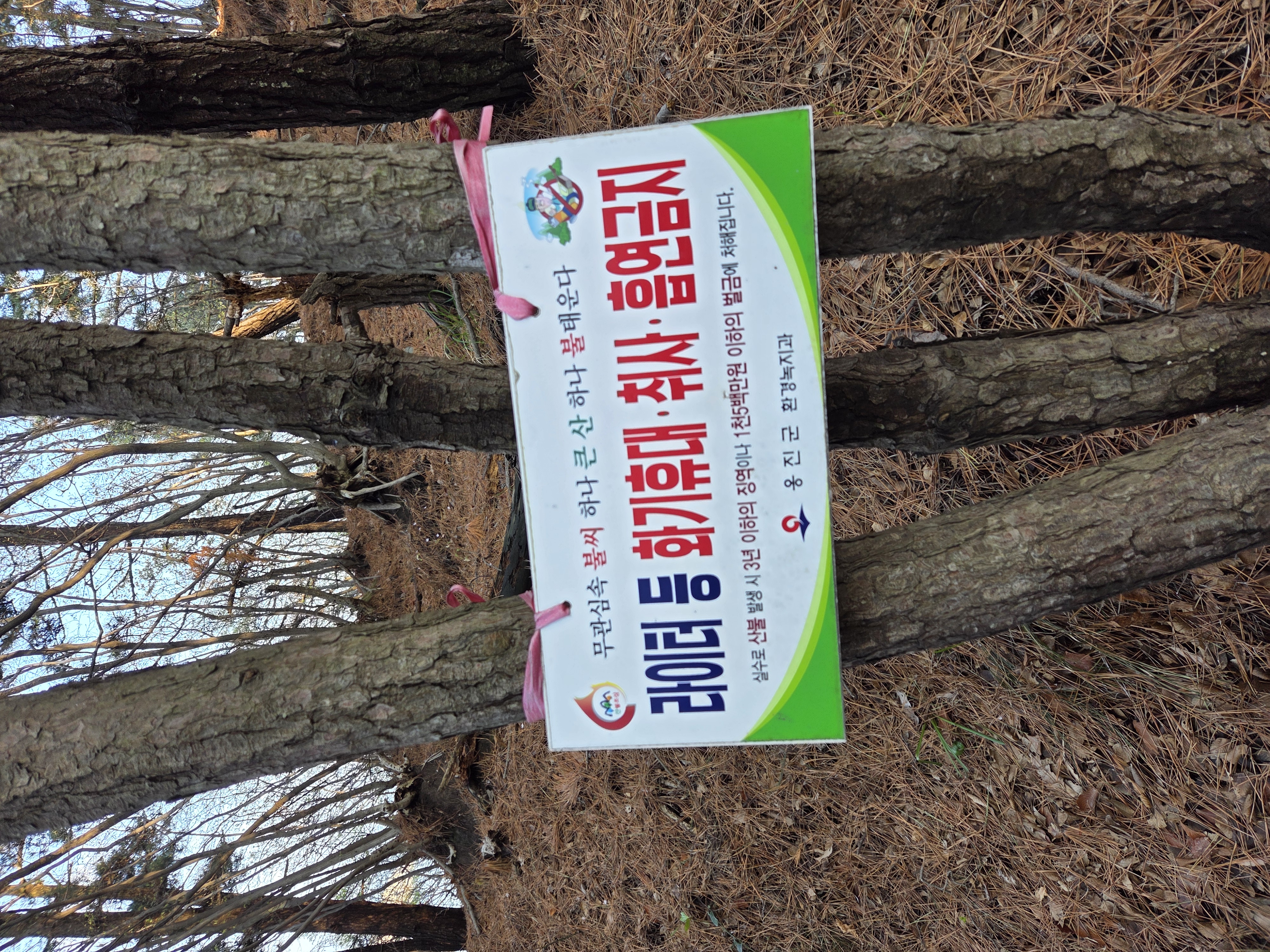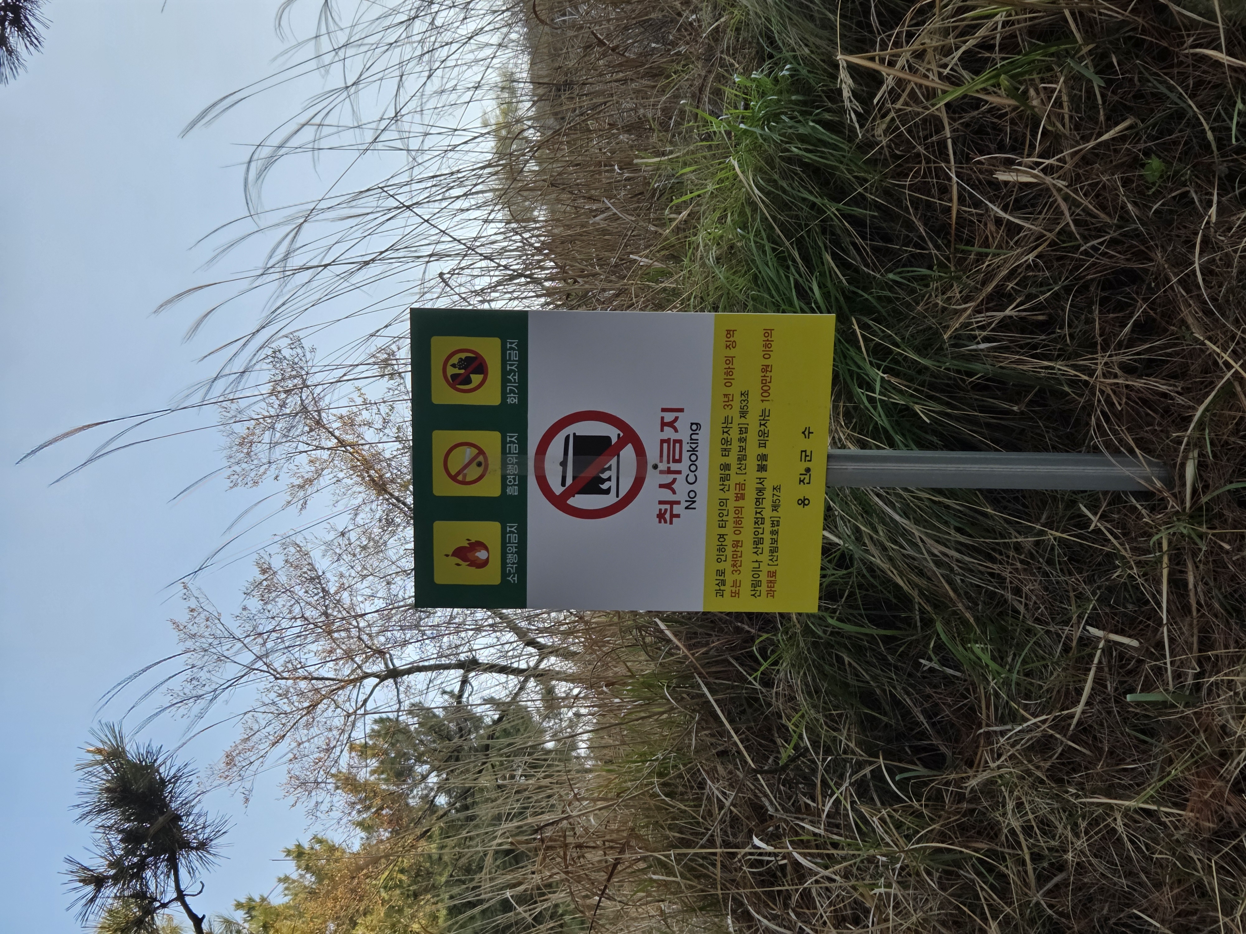 섬 곳곳에 화기 휴대와 취사를 금한다는 팻말이 있다
