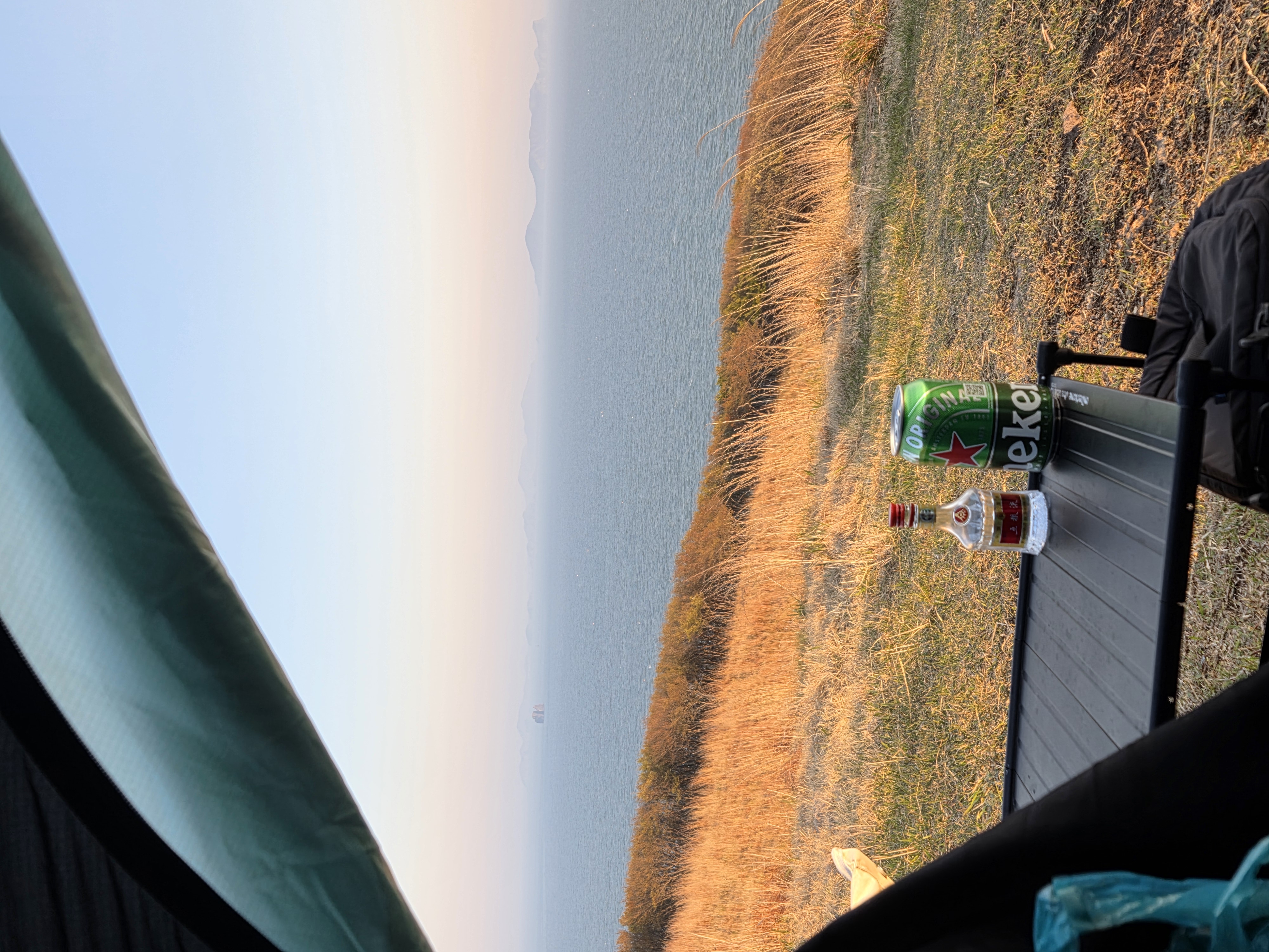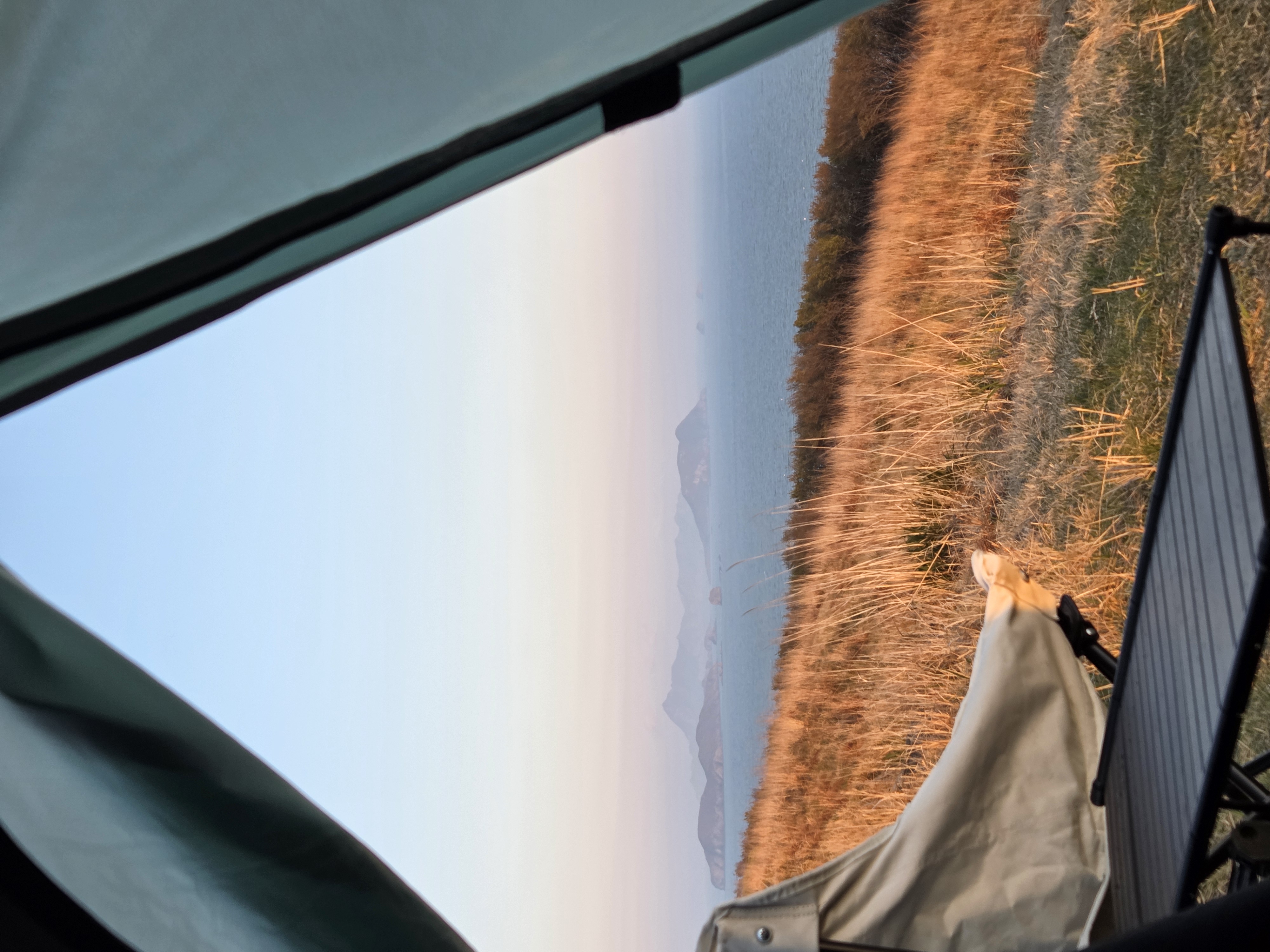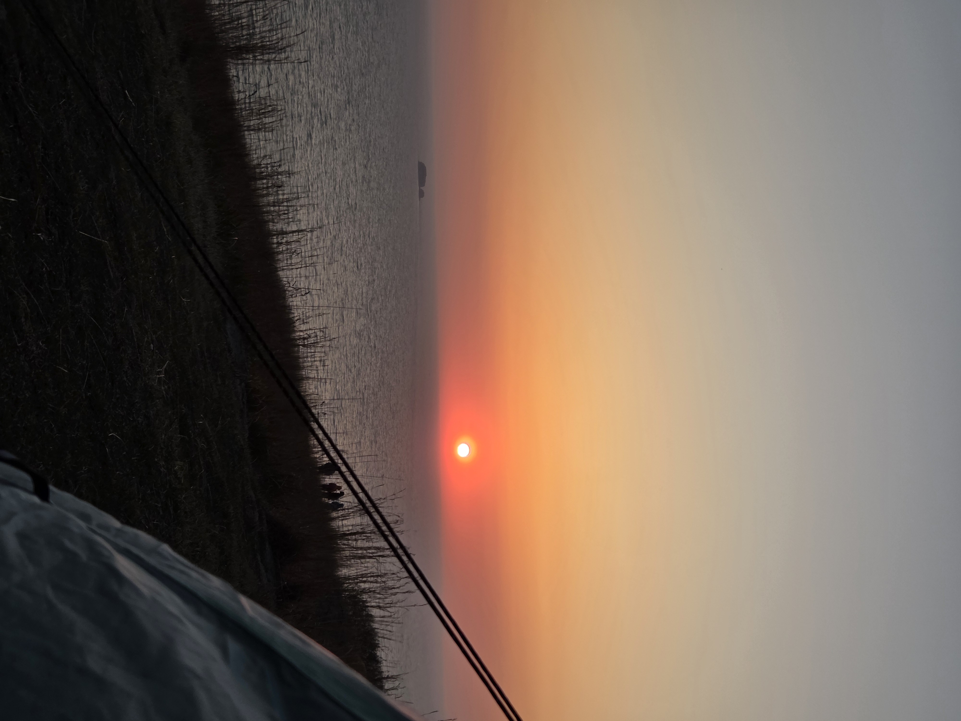 바람이 너무 많이 부는 관계로 추워서 텐트안에서 노을을 볼 수 밖에 없었다