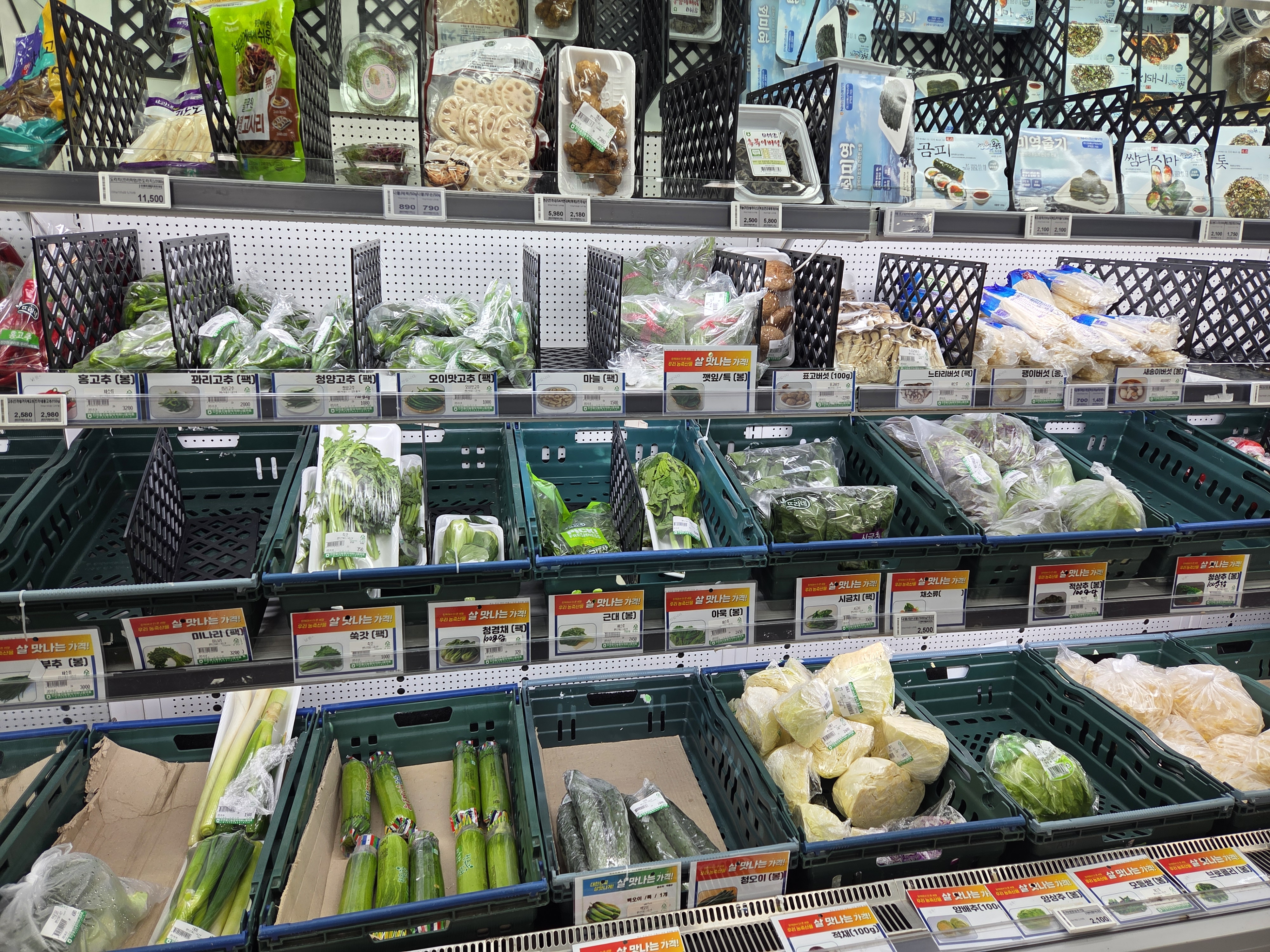 채소 코너에는 다양한 채소와 쌈채소등이 있다.