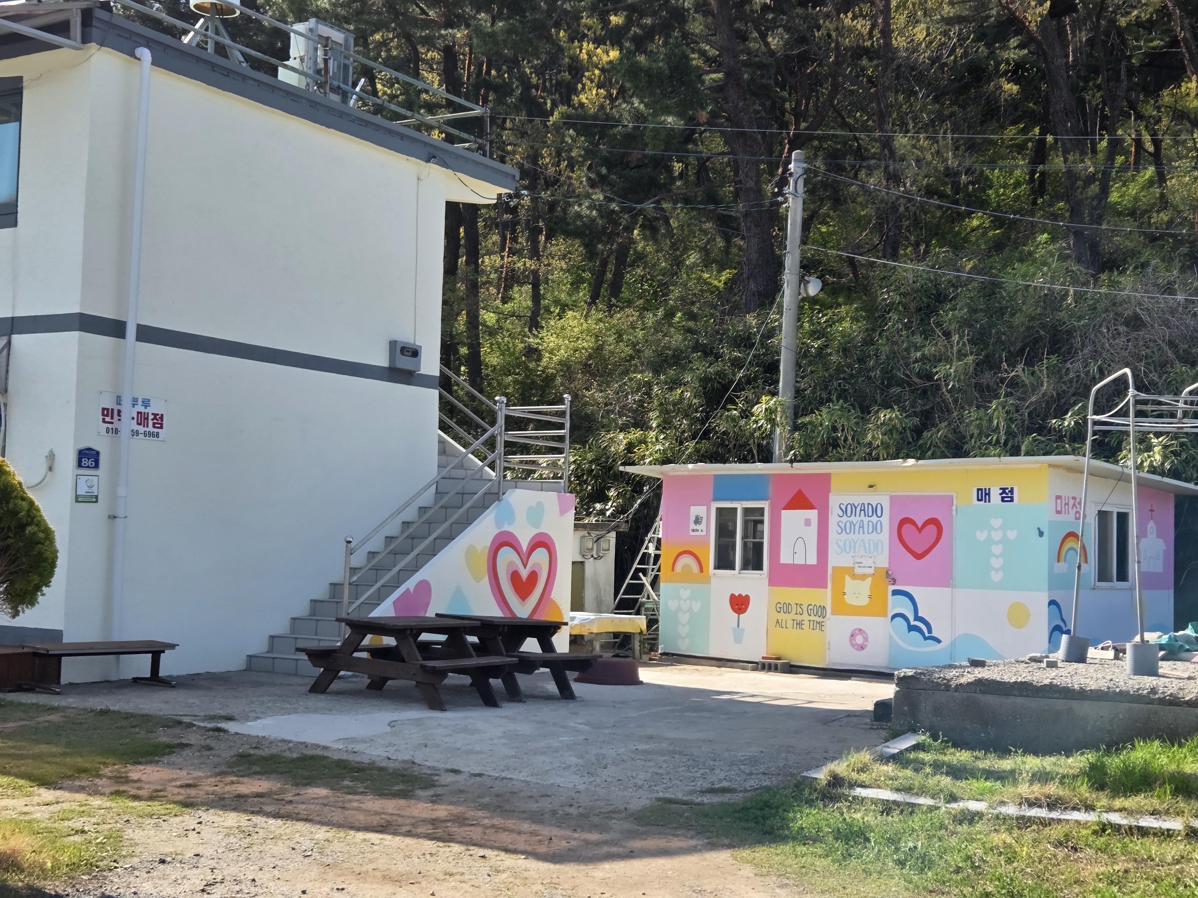 그 해변의 바로 앞에 알록 달록 예쁜 때뿌루 매점과 민박집이 있다. 사장님께서 둘 다 함께 운영하고 계신다.