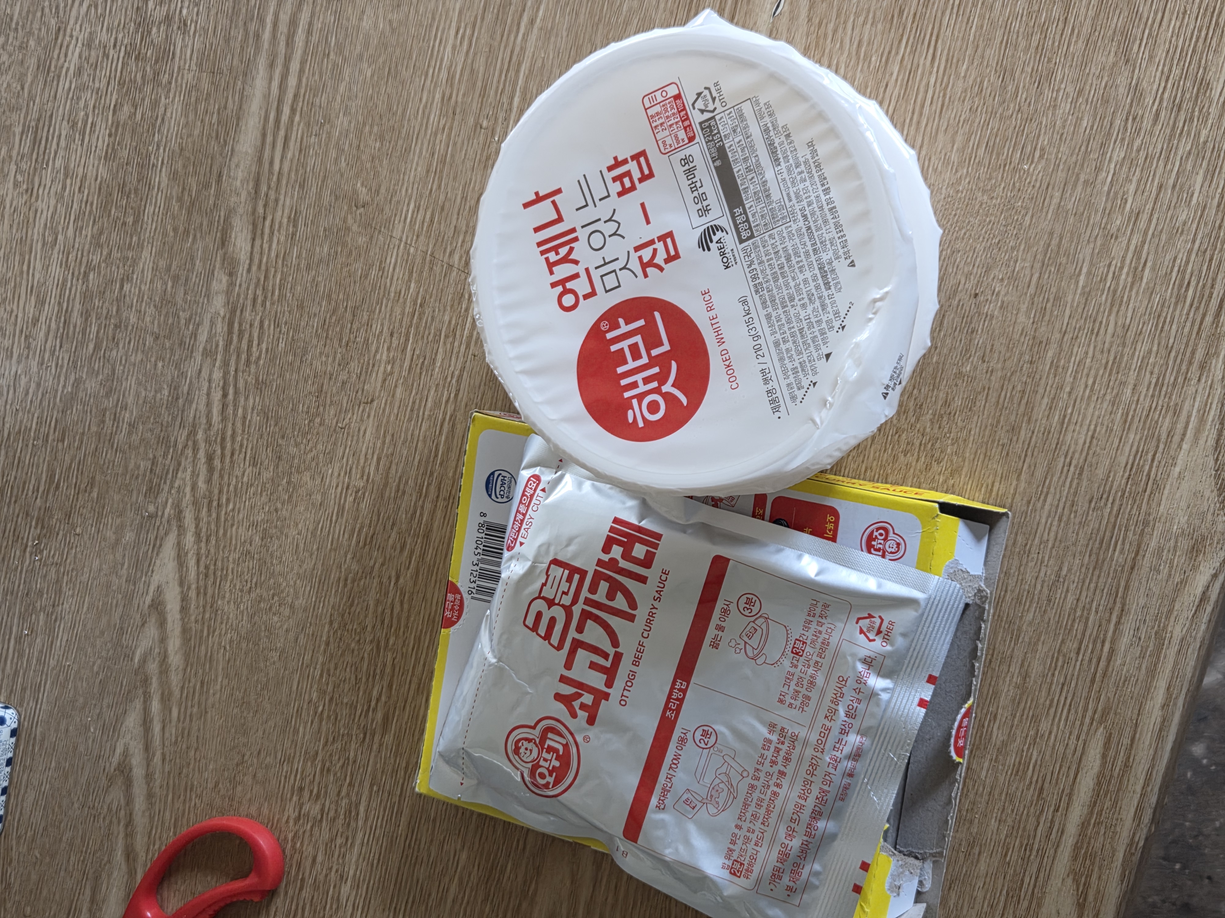 우리는 아침에는 대충 매점에서 산 햇반과 오뚜기 카레로 밥을 떼우고