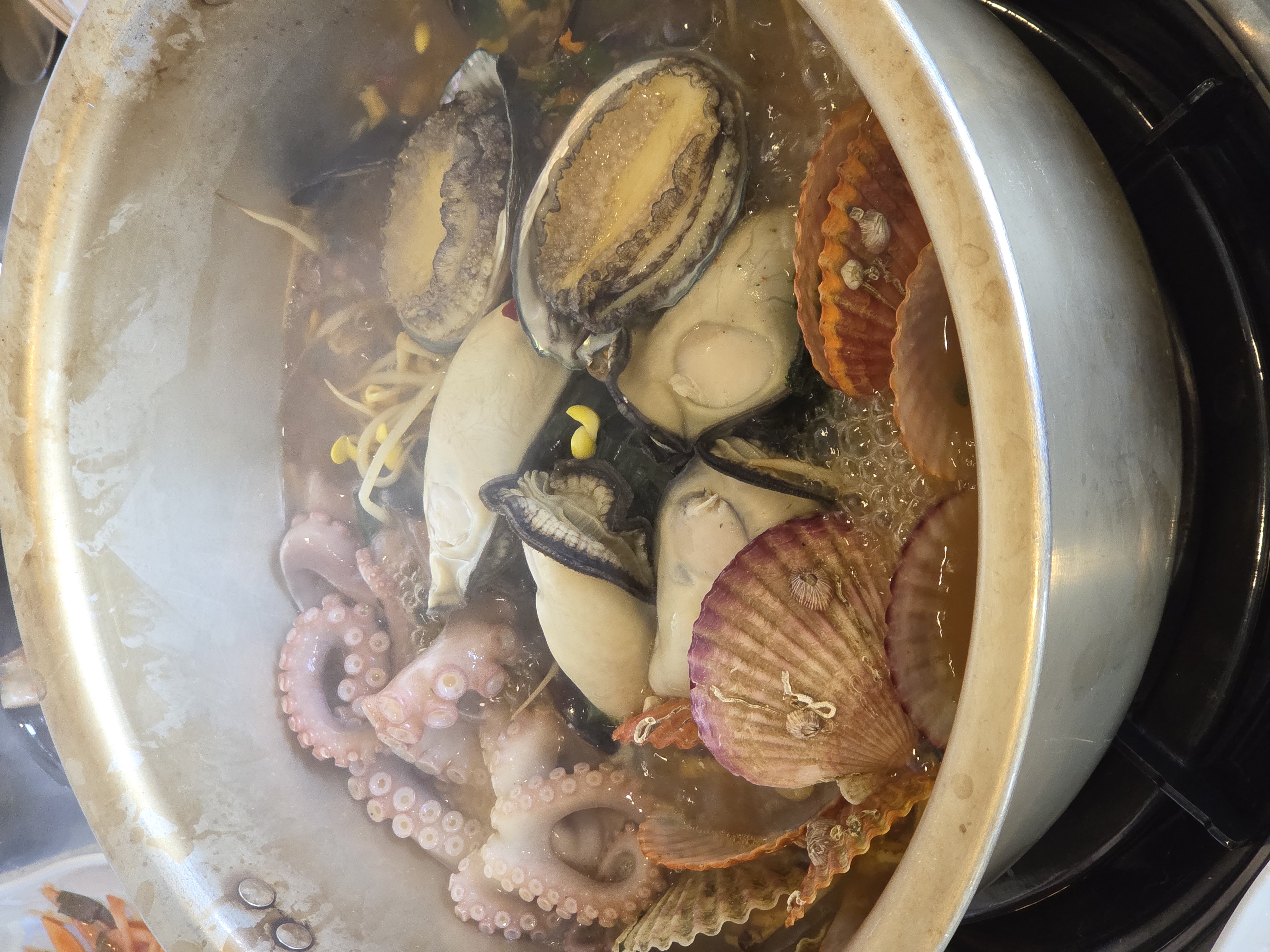 여기도 해물이 아주 잔뜩 들어있어서 라면을 넣을 자리가 없다. 해물을 건져먹고 나서 라면은 따로 넣으면 된다.