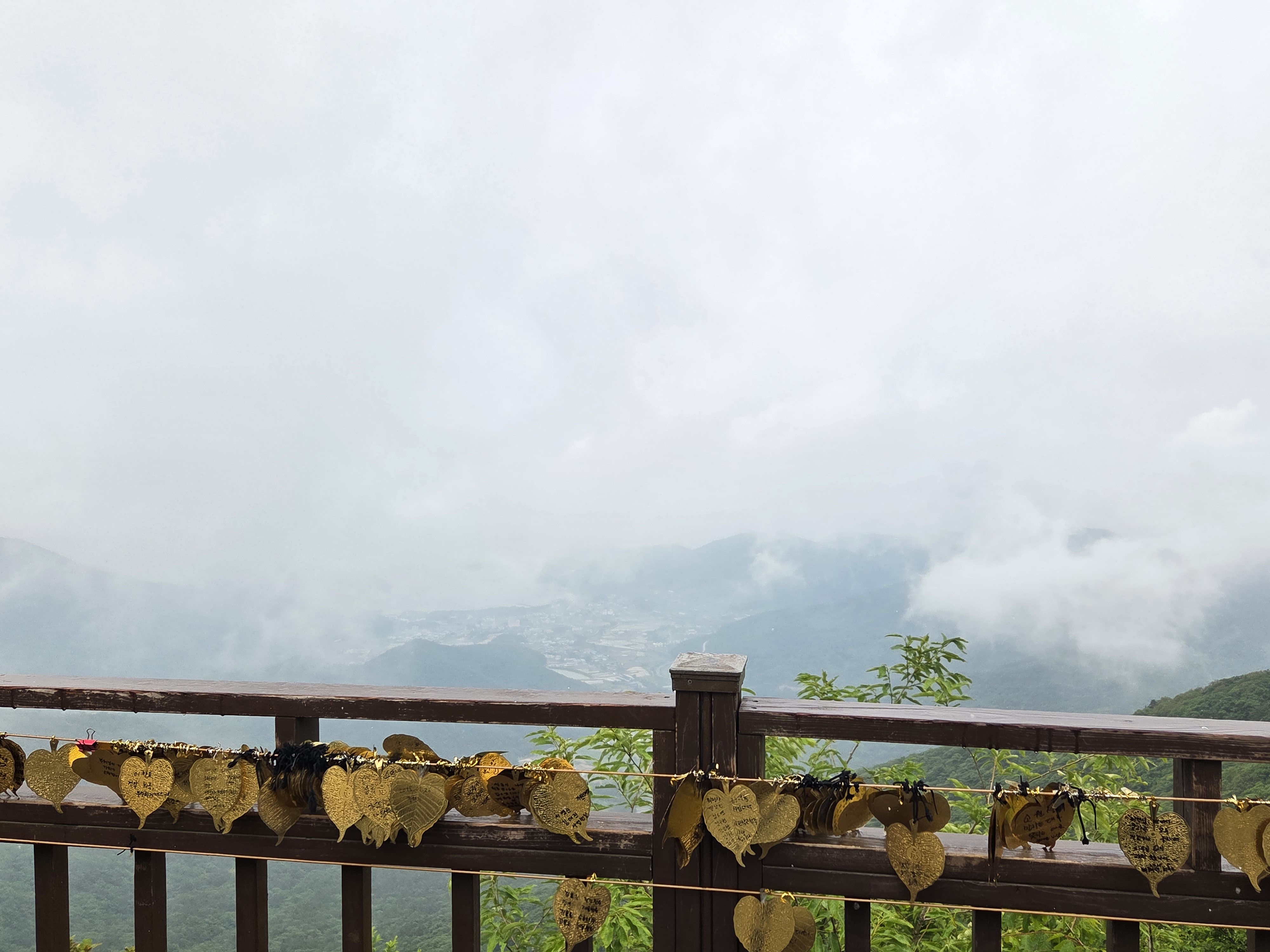 비록 구름이 짙게 껴서 한려해상공원 모습이 보이진 않았지만 금산의 모습 자체로도 참 아름다웠다
