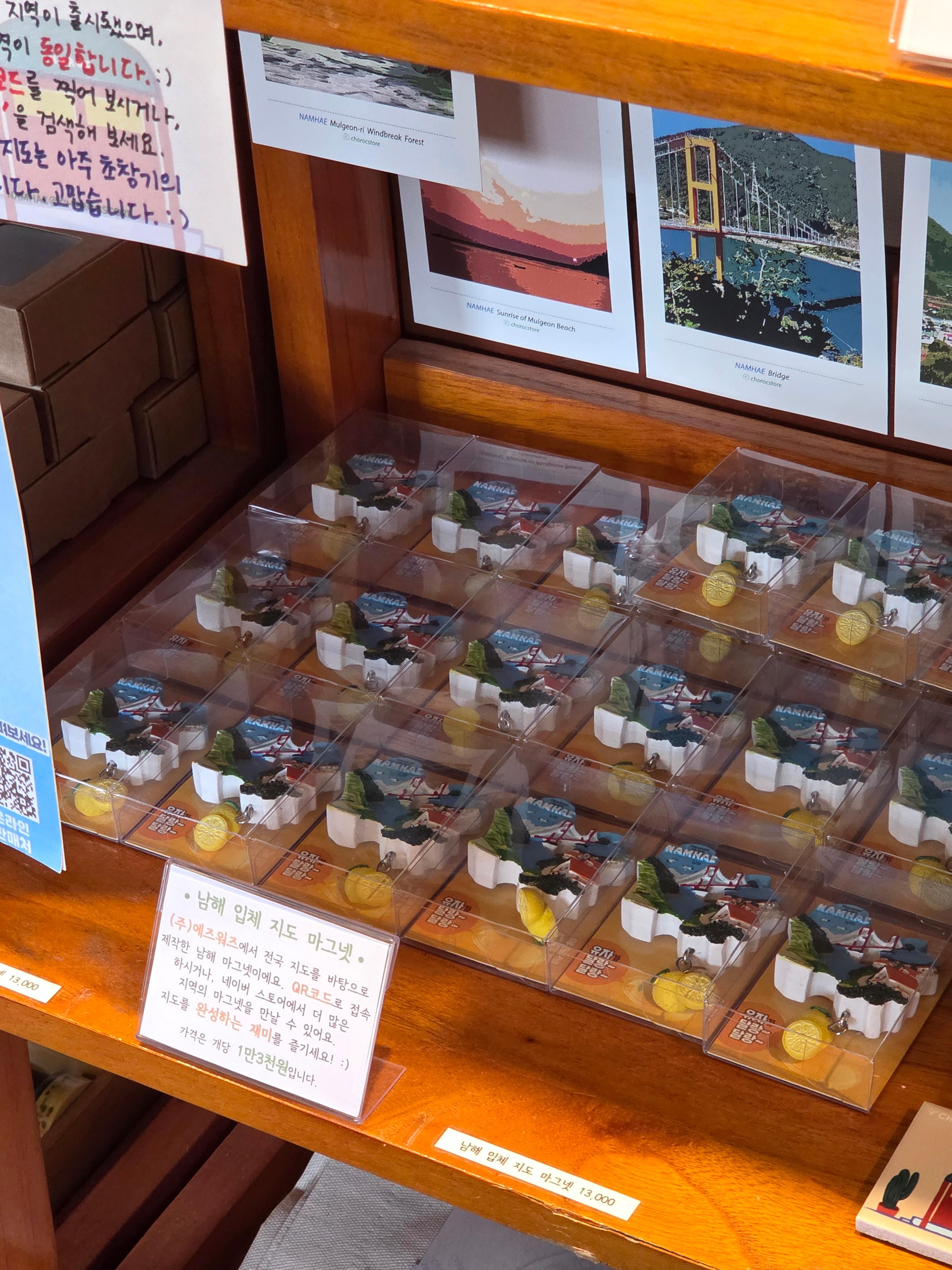 남해와 관련된 굿즈가 한가득이다.