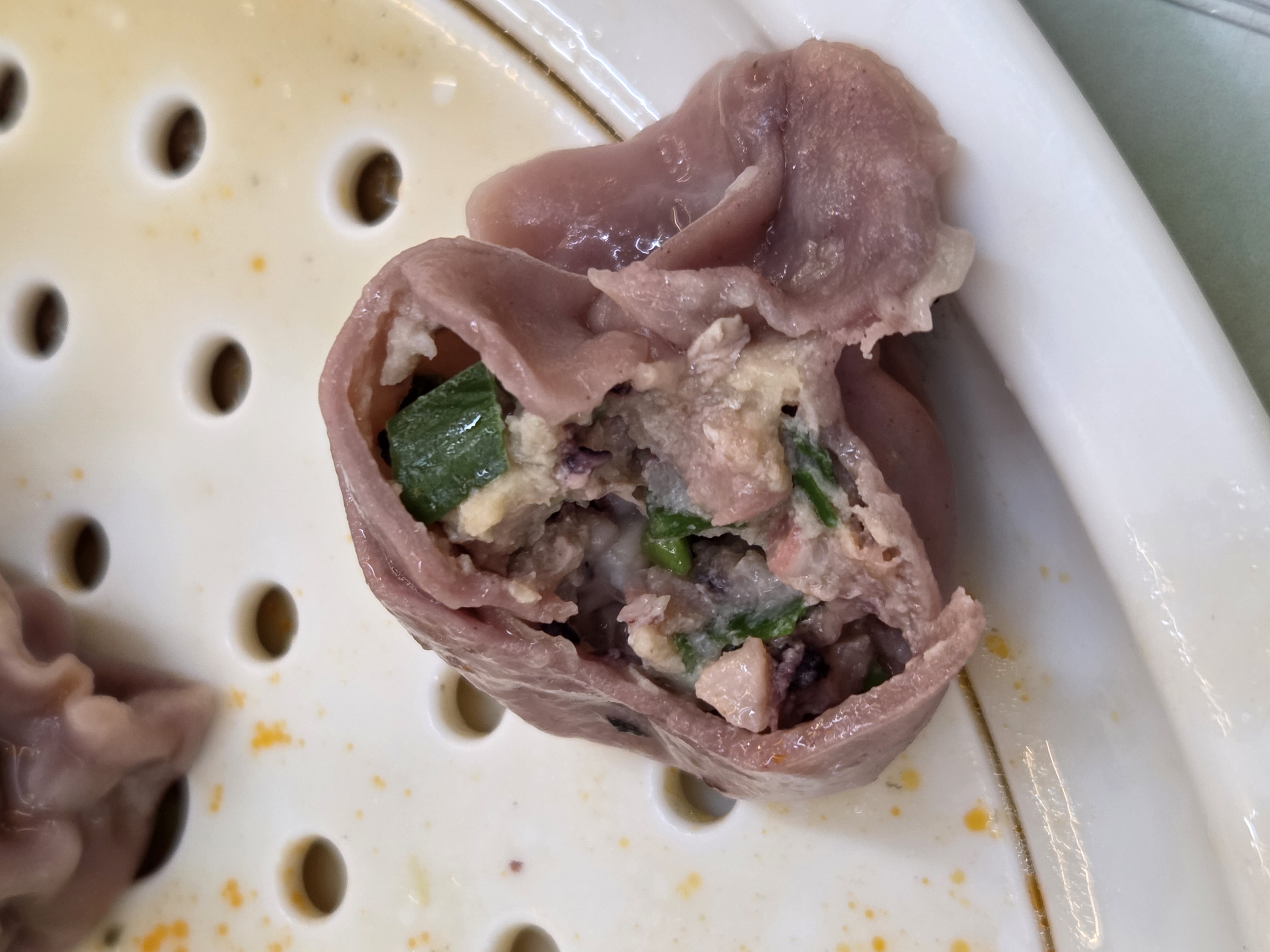 안에 육즙도 가득해서 씹을 때 한입에 넣고 씹어야 터지지 않고 안전하게 먹을 수 있다.