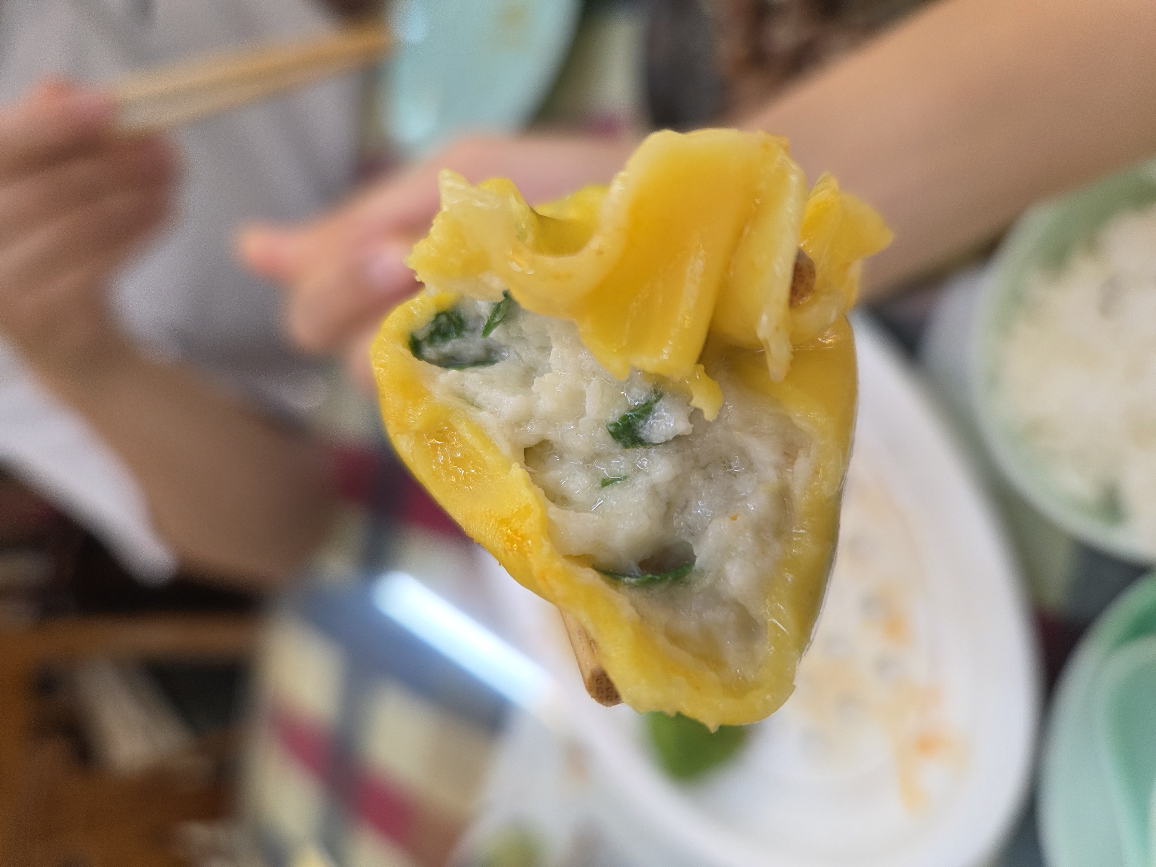 안에 육즙도 가득해서 씹을 때 한입에 넣고 씹어야 터지지 않고 안전하게 먹을 수 있다.