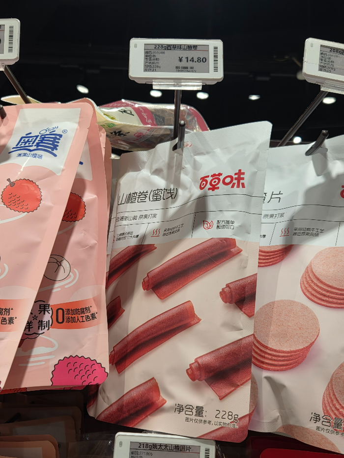 산사나무 열매를 설탕과 같이 끓여서 녹인다음 펼쳐놓고 말려서 돌돌 말아낸 간식인데 새콤달콤하니 정말 맛있다.