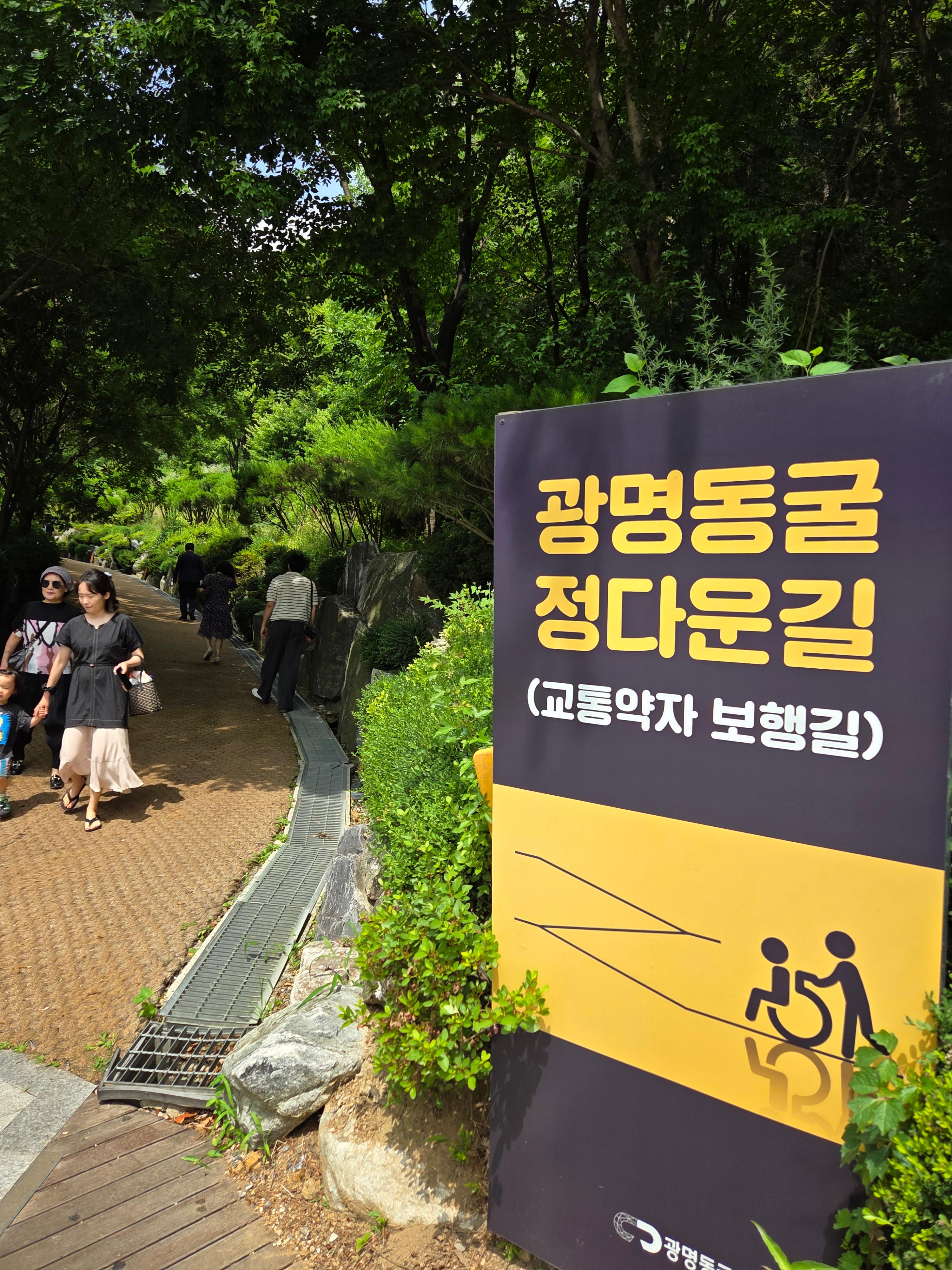 일단 동굴 입구는 약간 지대가 높은 곳에 위치해 있어서, 주차장에 차를 대고 나면 광명동굴 정다운길을 따라 올라가야한다.
