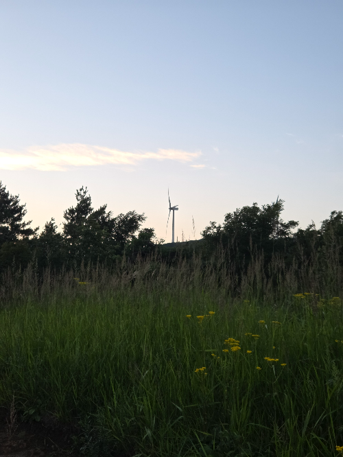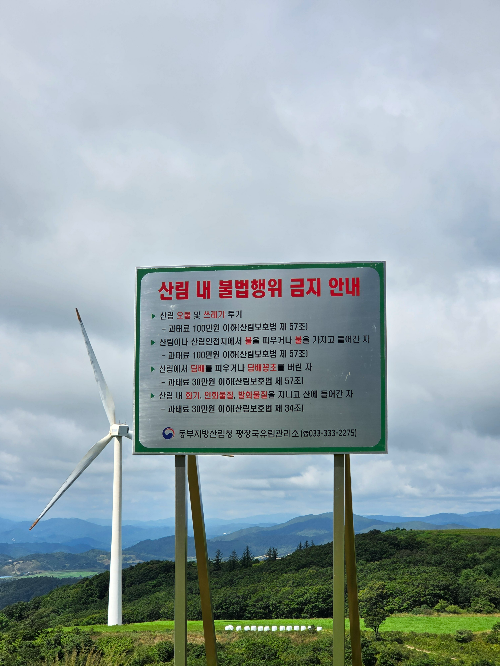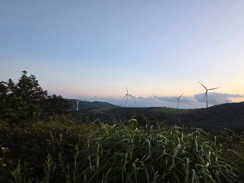 숲길을 계속 걷다보면 한시간 넘어가는 지점부터 거대한 풍력발전기가 보인다.