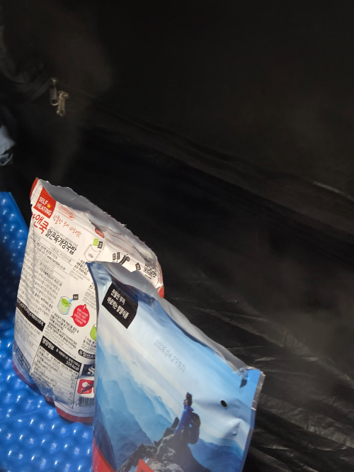 다 먹고도 발열팩에 김이 펄펄 나서 텐트 안에서 난로같은 역할을 톡톡히 해주었다.