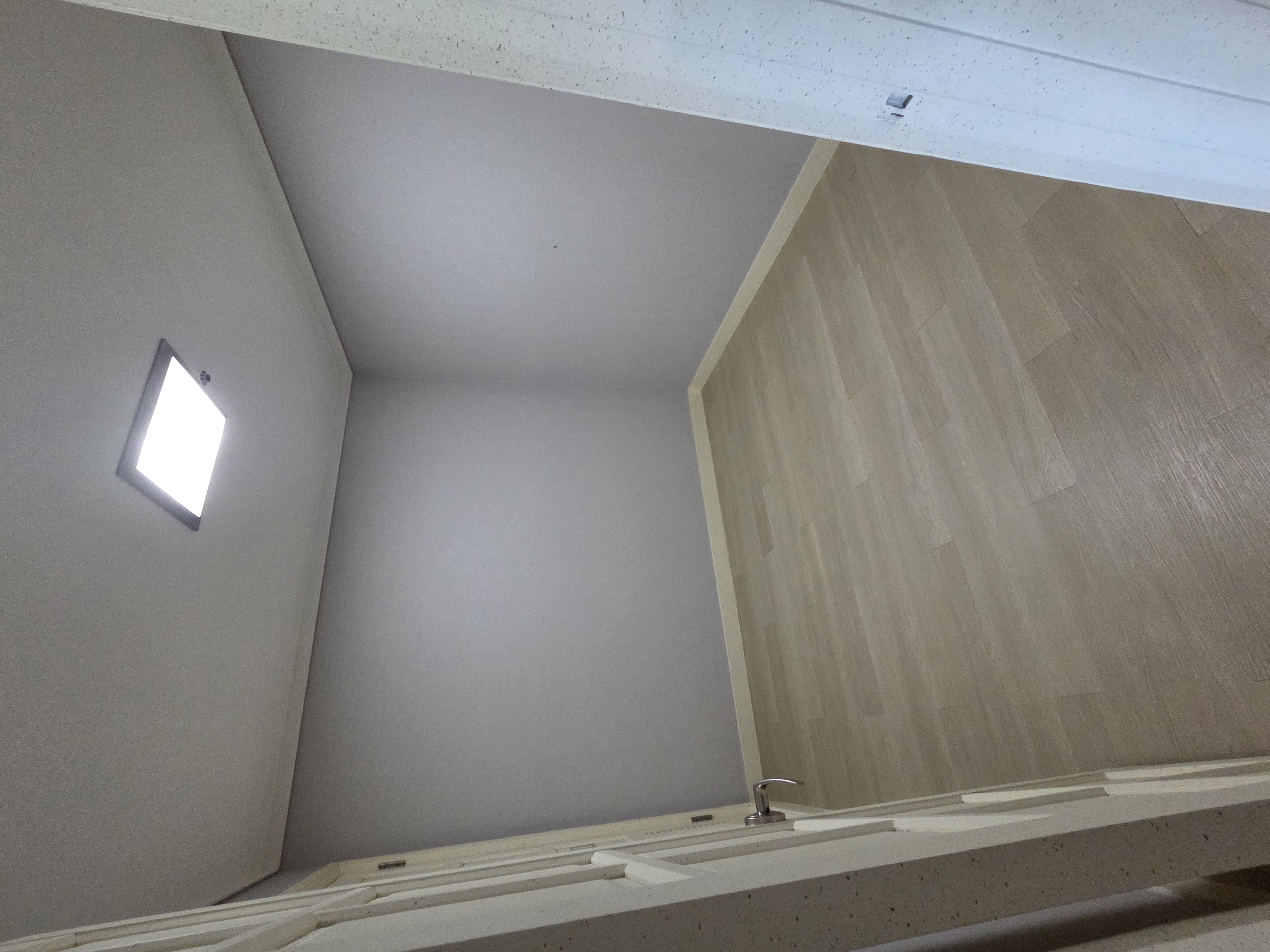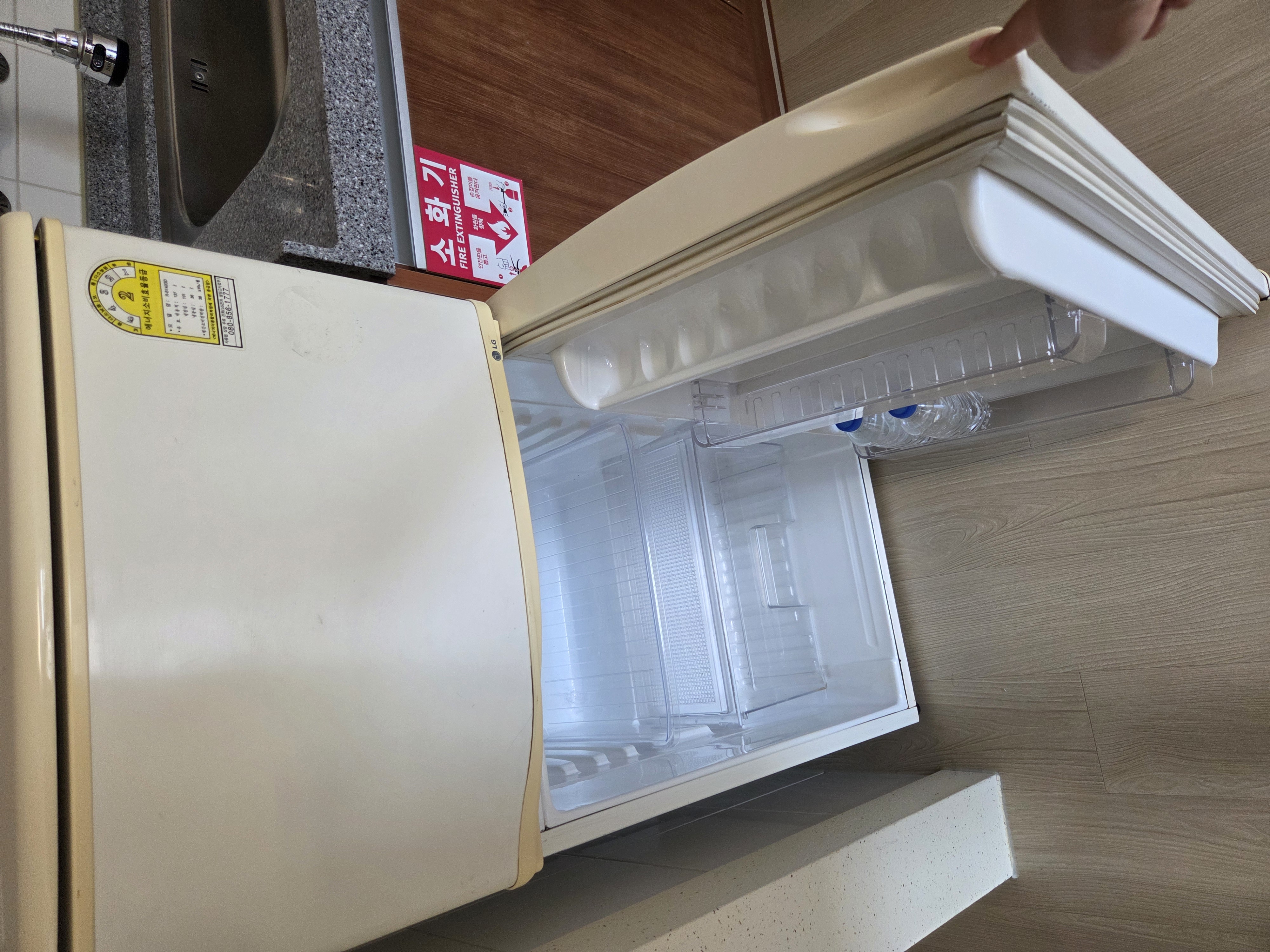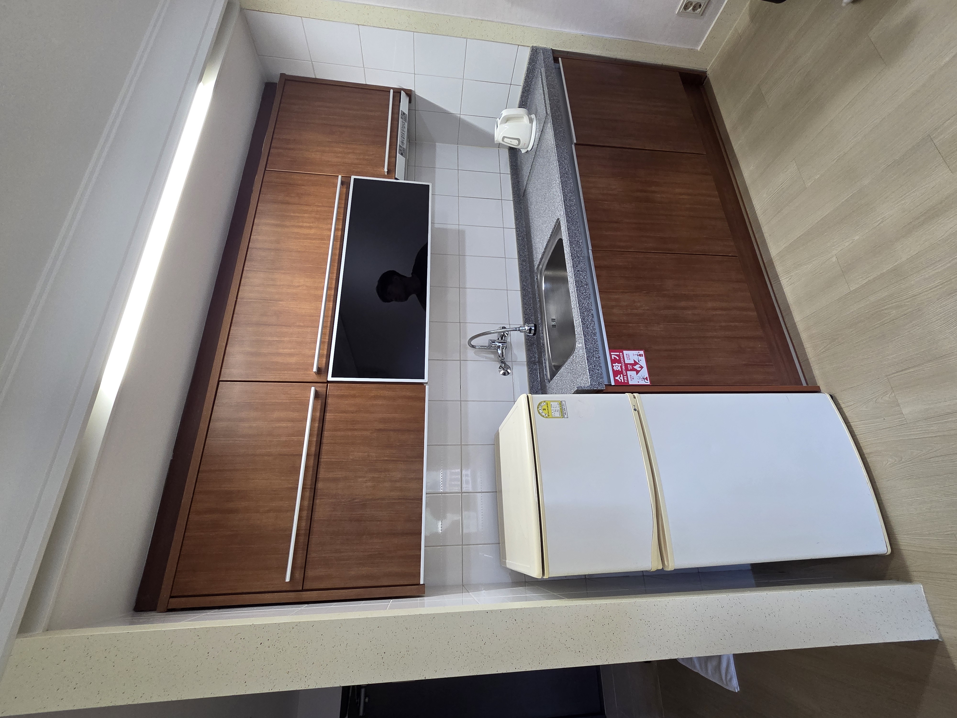 취사시설이 없는 클린 룸으로 고른 거라, 주방 상하부장 안에는 아무것도 없다.