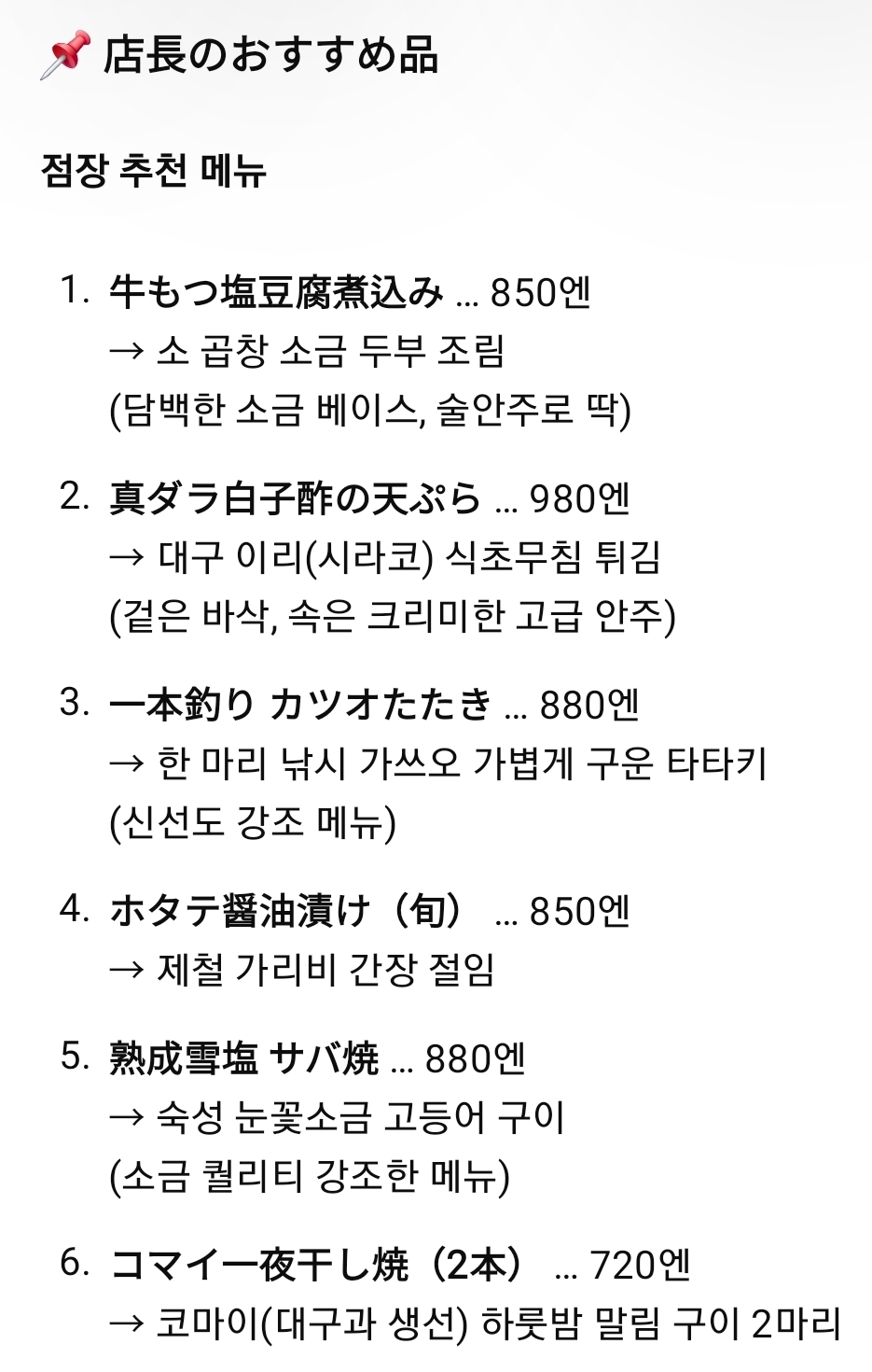 ✔️메뉴당 가격 500엔 ~ 2000엔 사이