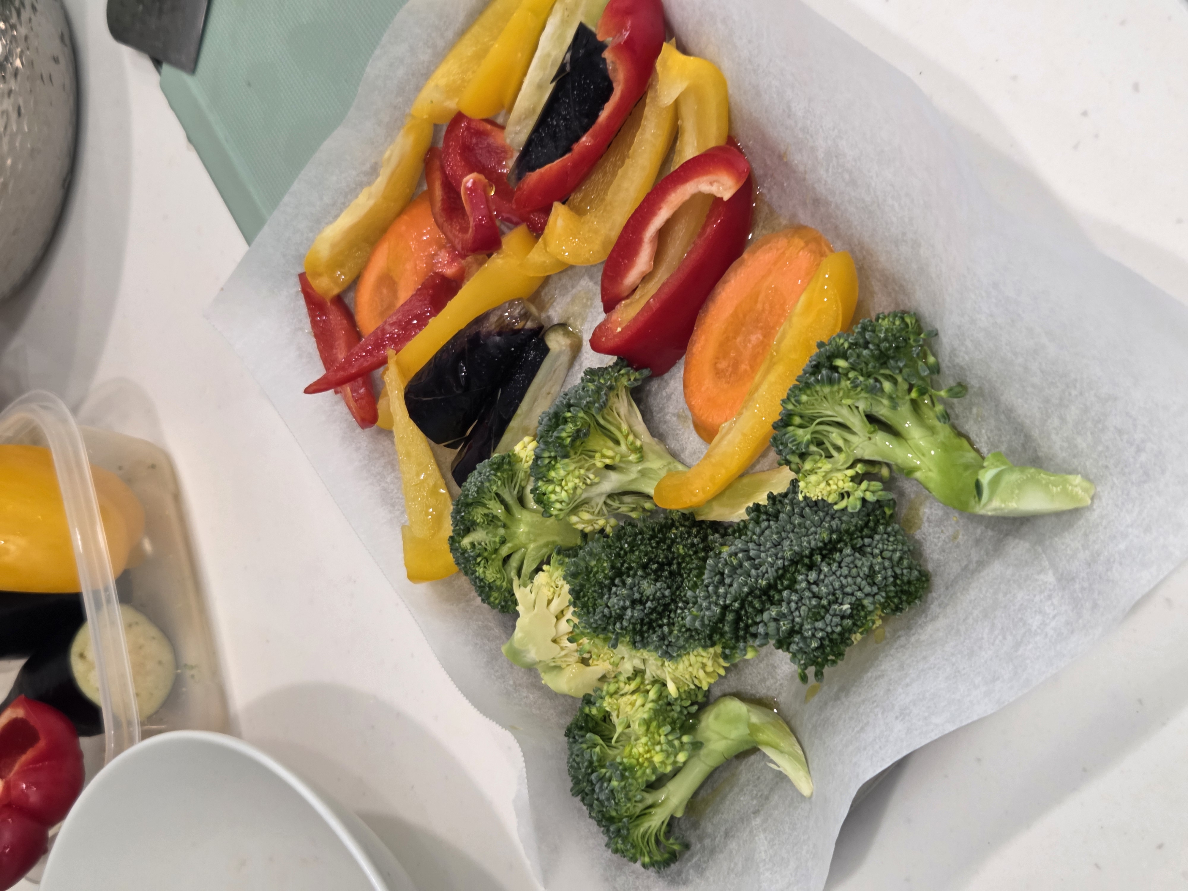 감자빼고는 다 부드러운 채소들이라 감자만 따로 찌고 오븐 투입.
