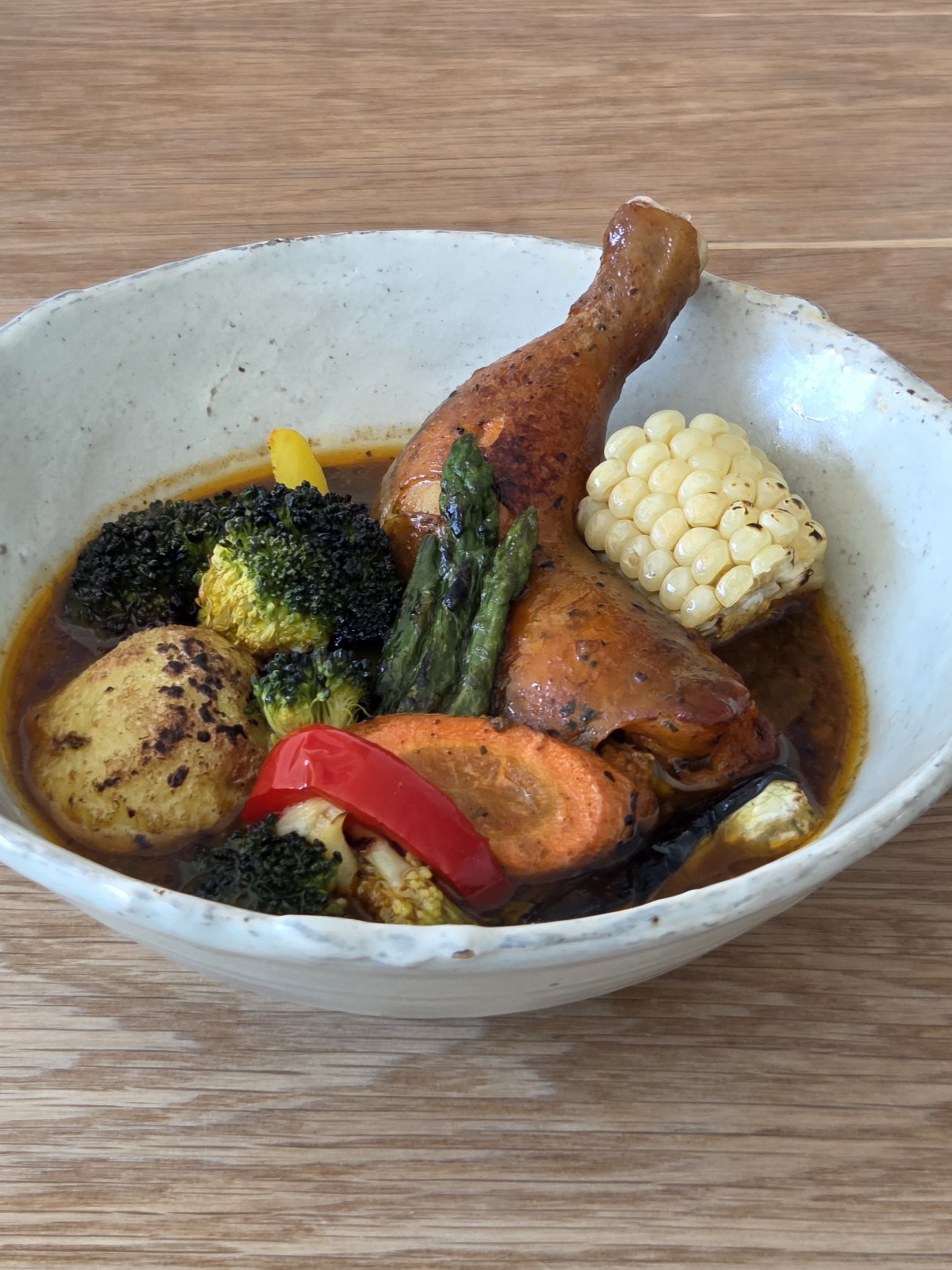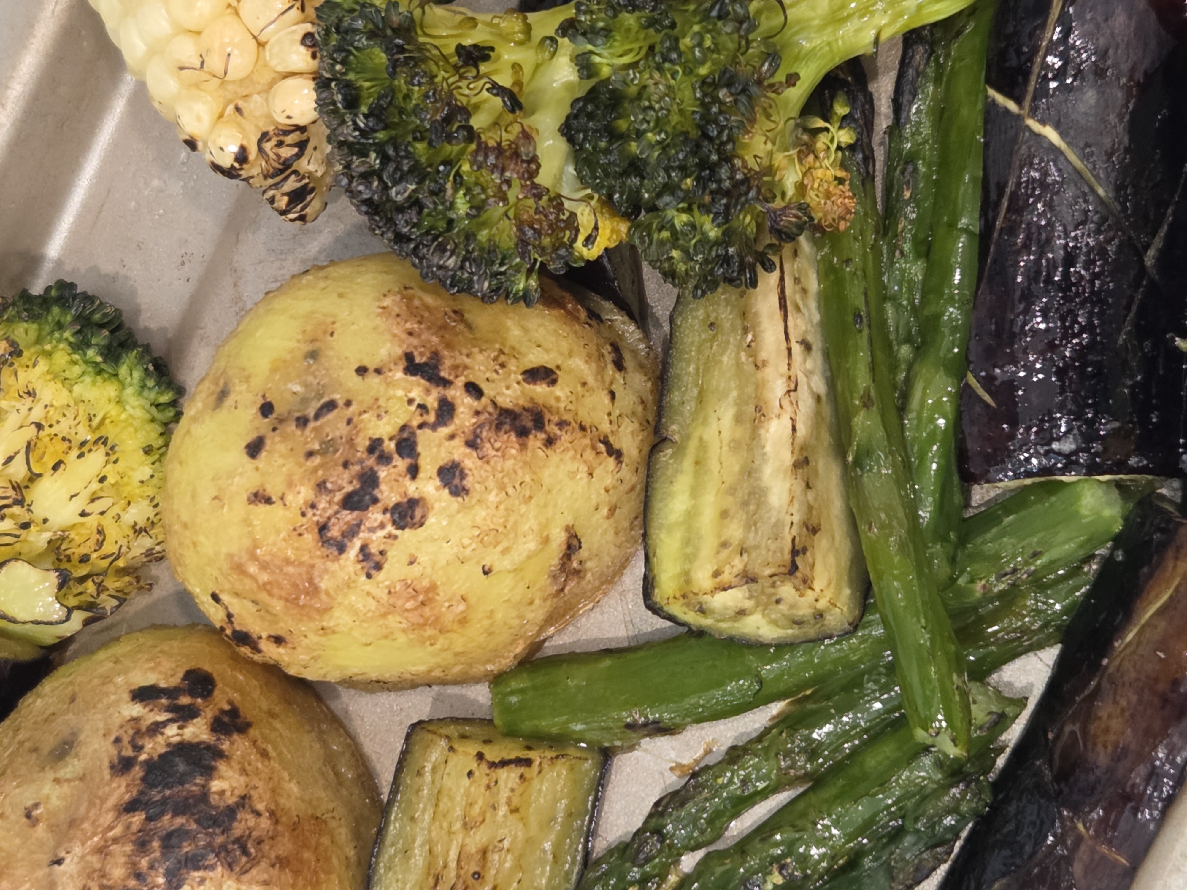 감자, 파프리카, 가지, 아스파라거스, 브로콜리, 옥수수, 당근을 넣었는데
