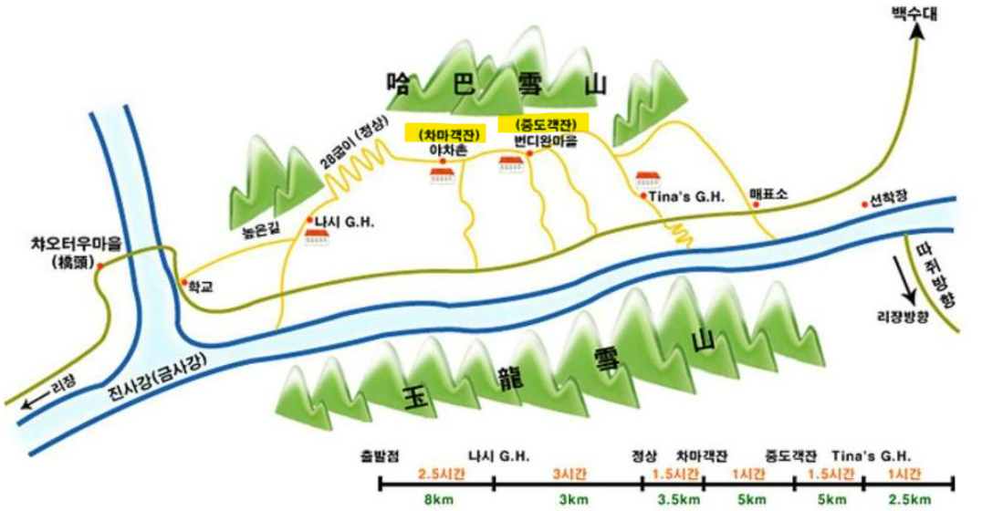 | 위치 | 나시객잔에서 도보로 약 3시간 | 나시객잔에서 도보로 약 5시간 |