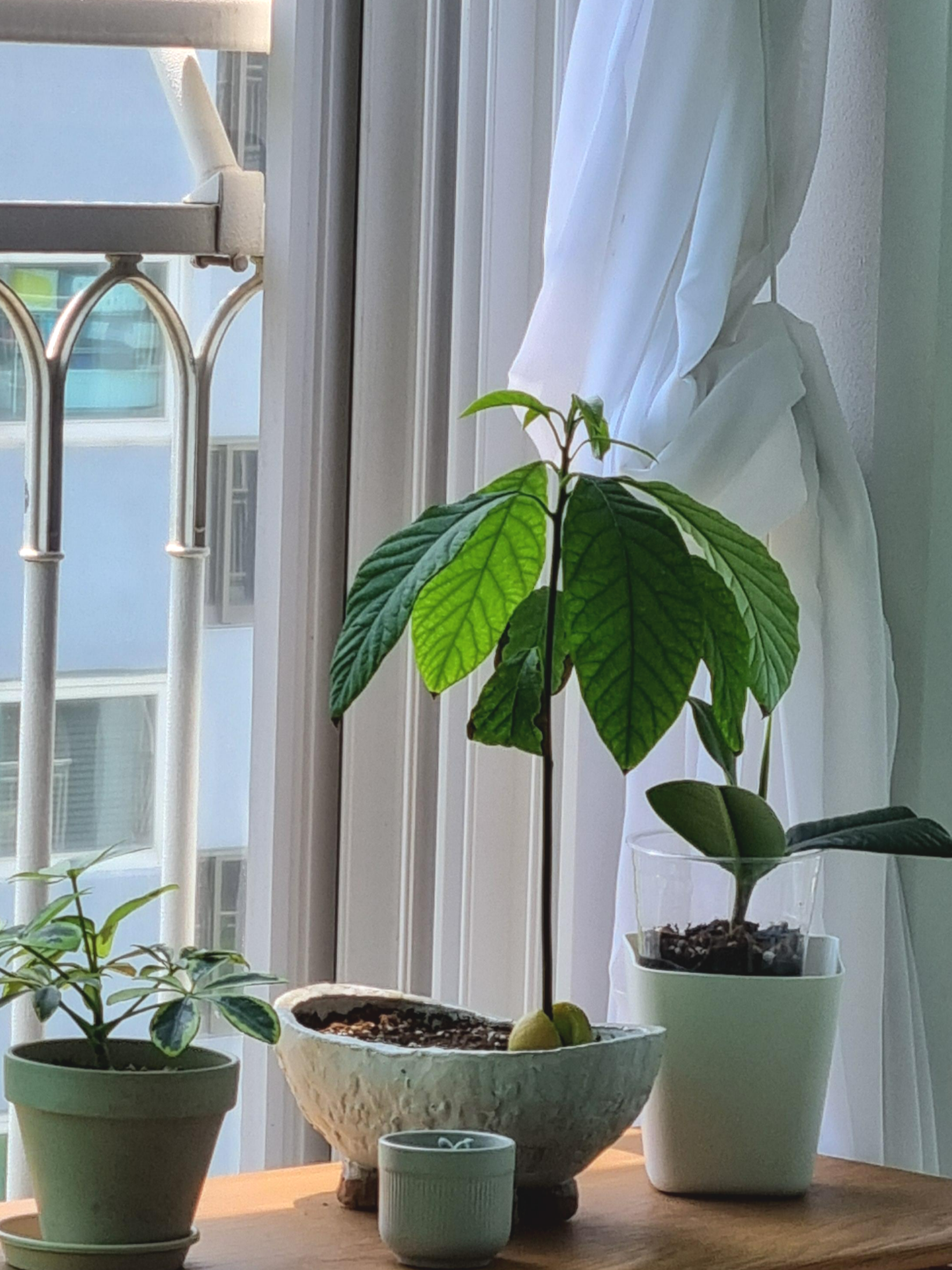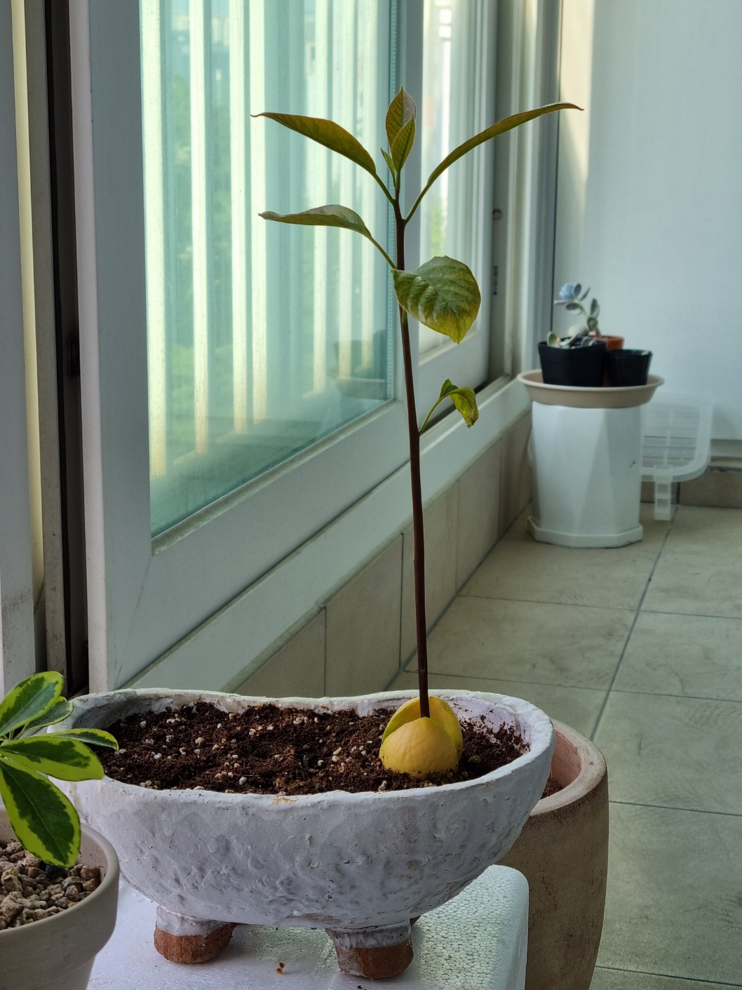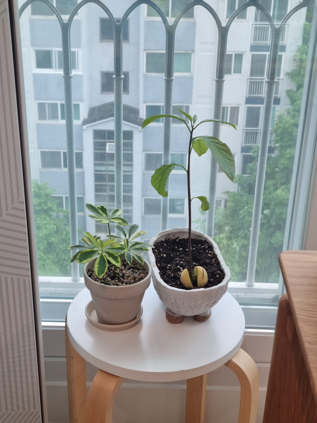 아보카도가 자라지 않는다면, 햇빛이나 물, 바람(통풍) 3가지를 살펴보는 것도 좋겠지만, 나처럼 식물에 대한 지식이 부족한 사람이라면 발아 환경이 안 되는 겨울에 싹을 틔워 보려고 하고 있지는 않는지도 생각해 보면 좋겠다. 아무튼 이 친구가 언제까지 자랄지 모르겠지만, 처음으로 발아부터 이 키 까지 키우는 것에 성공하여 꽤나 애착이 간다. 계속 쑥쑥 잘 자라길.. 가끔 성장세를 추가로 업데이트해야겠다.