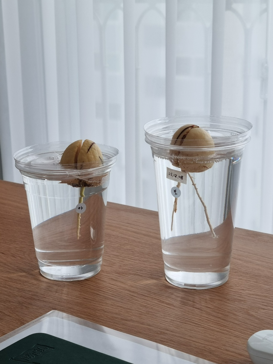 그렇게 4개를 물에 꽂아 놓은것이 2023년 12월 5일. (1일차)