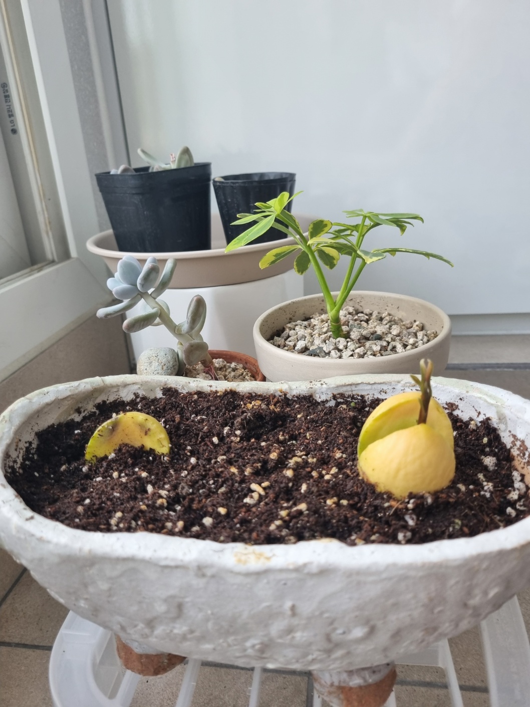 옆에 있는 아보카도는 뿌리는 살아있는 듯한데 싹이 날 기미가 영 보이지 않아서 제거해 주었다.