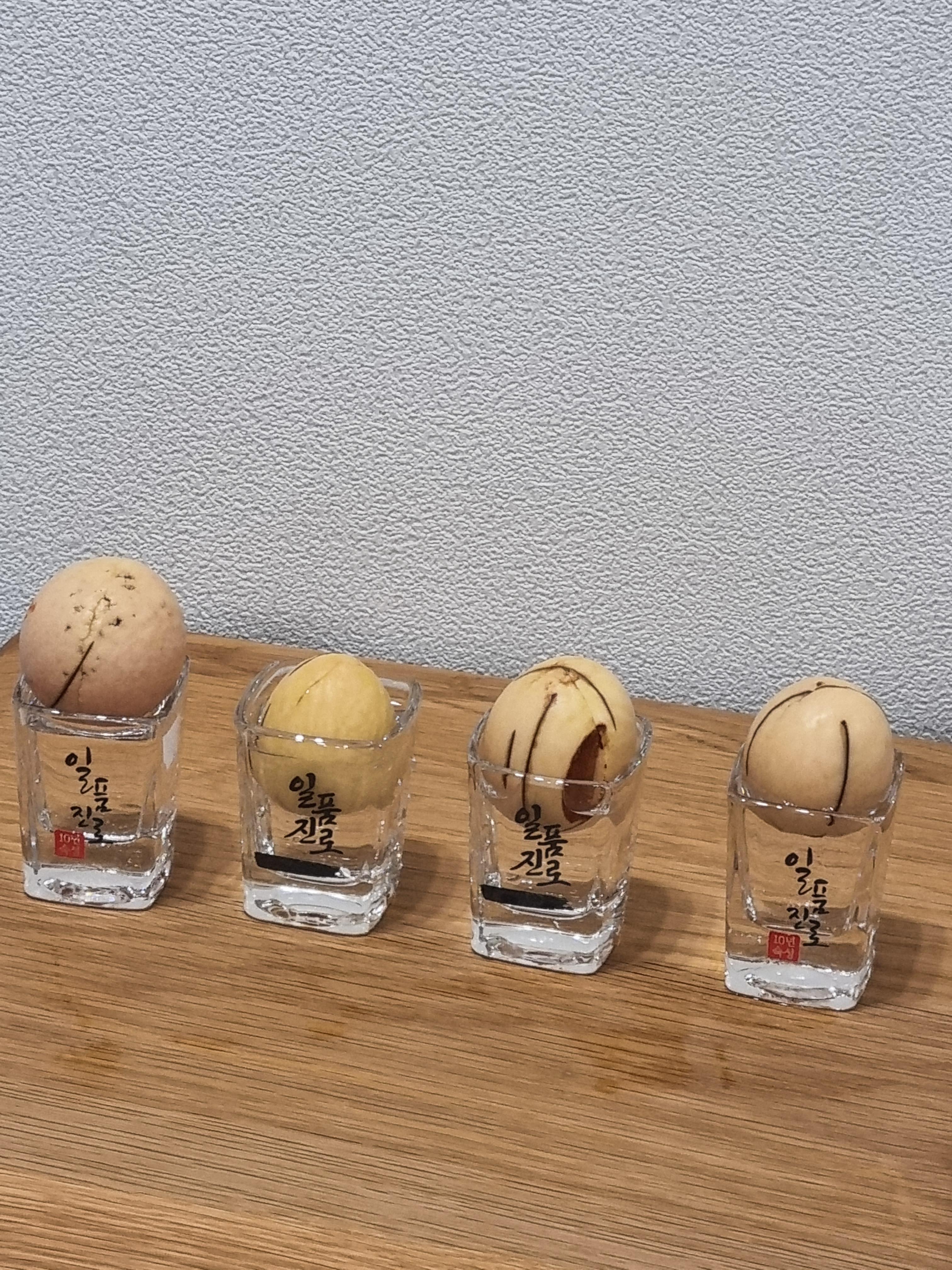 내가 그래도 25%의 확률로 하나는 발아를 시킬 수는 있지 않을까? 4개를 들고 집으로 돌아와 적절한 크기의 화병에 물꽂이를 해보았다. 인터넷에 대충 찾아보니 궁뎅이만 물에 담겨있으면 된다더라.