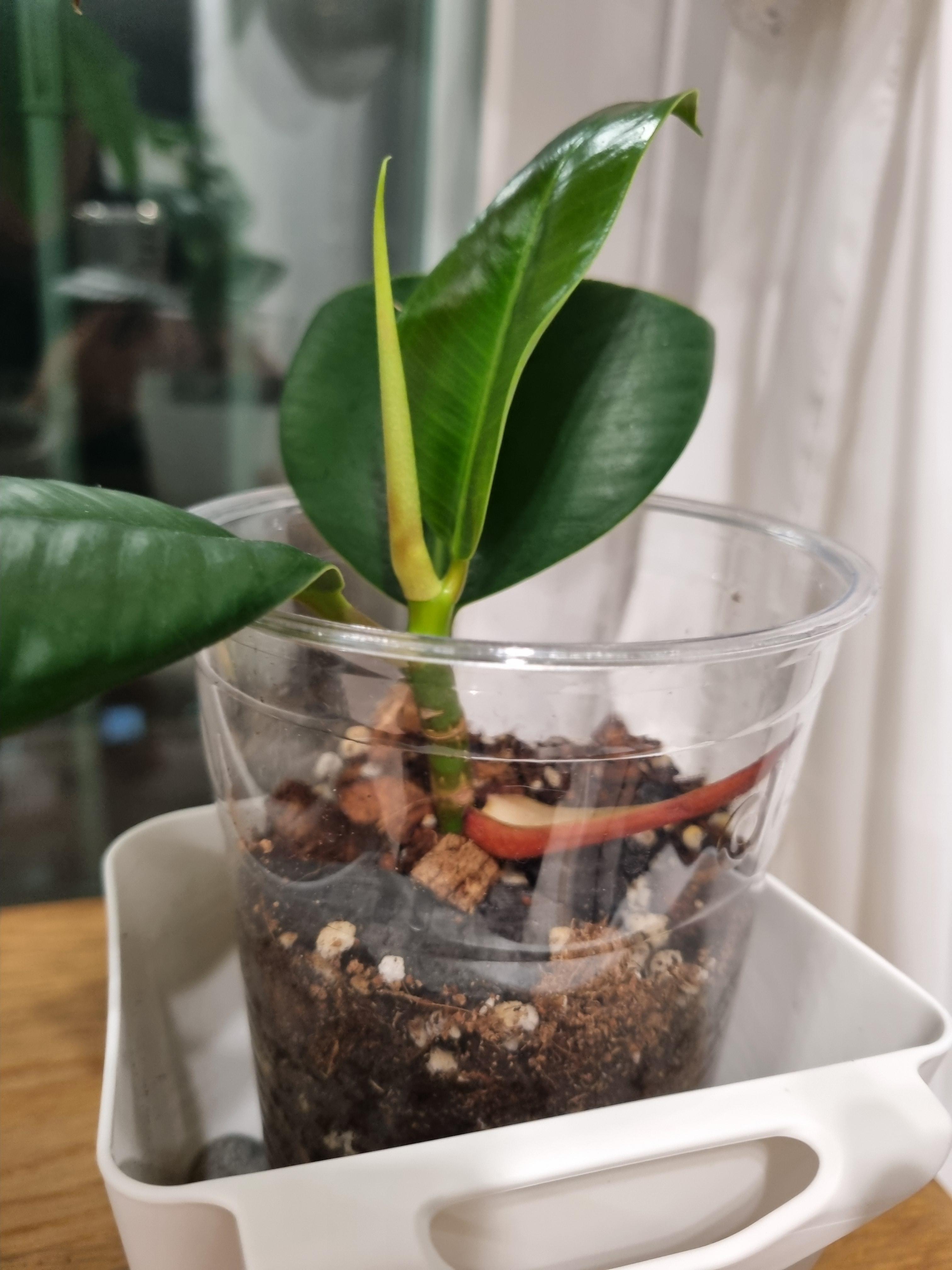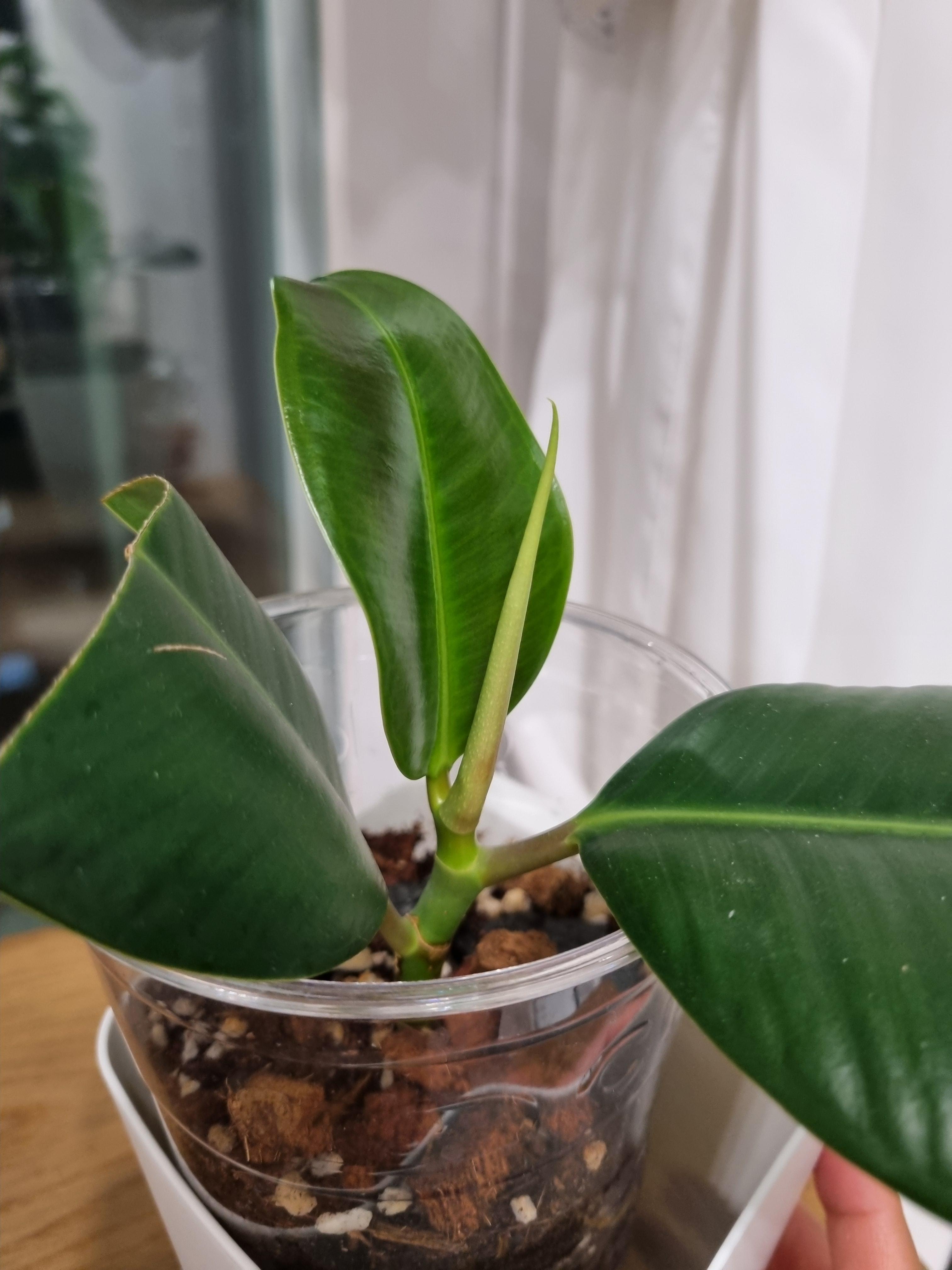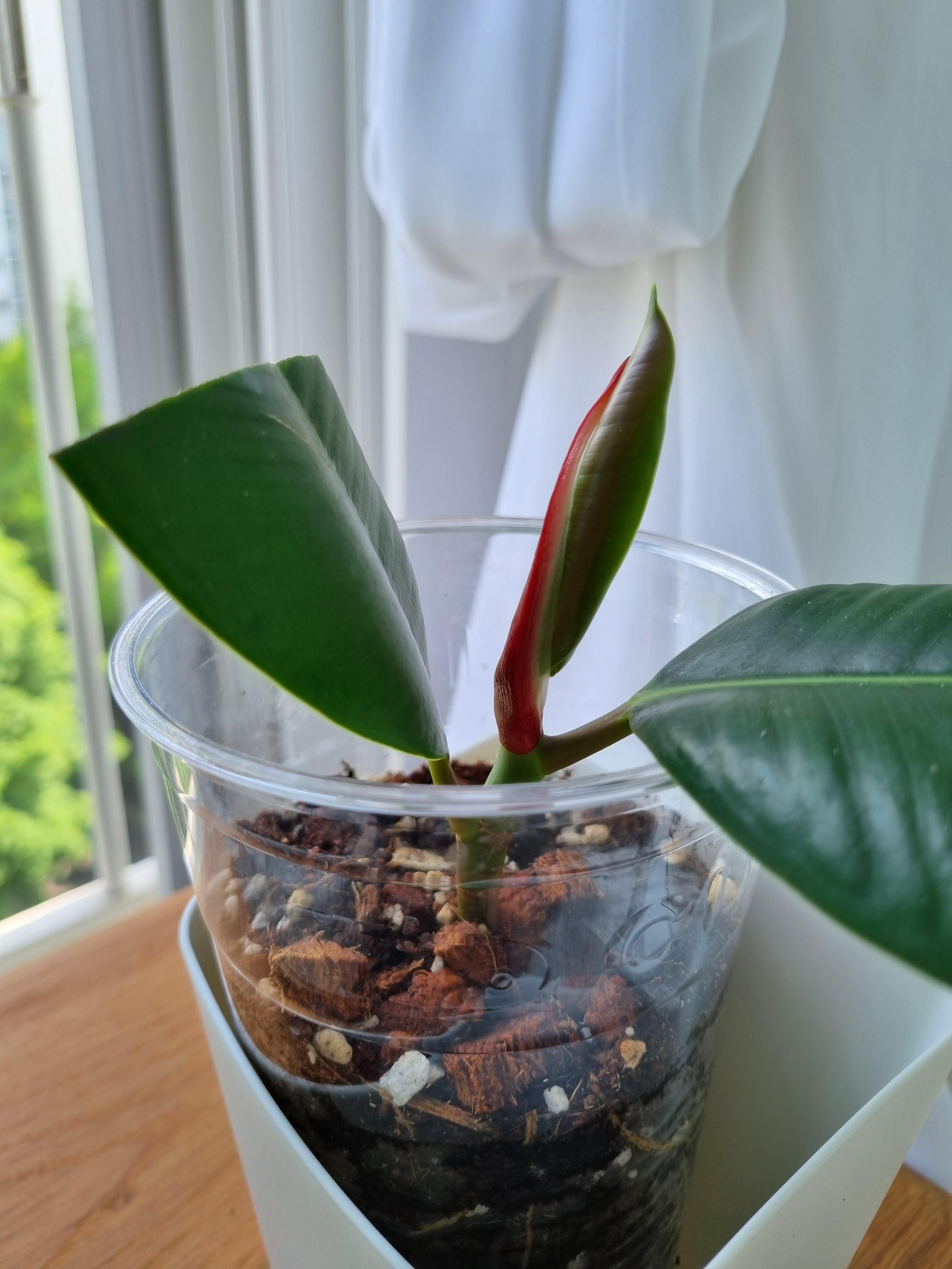 이렇게 네 개의 튼튼한 뿌리가 나있었고, 새순도 빨갛게 올라와서 건강한 친구였다.