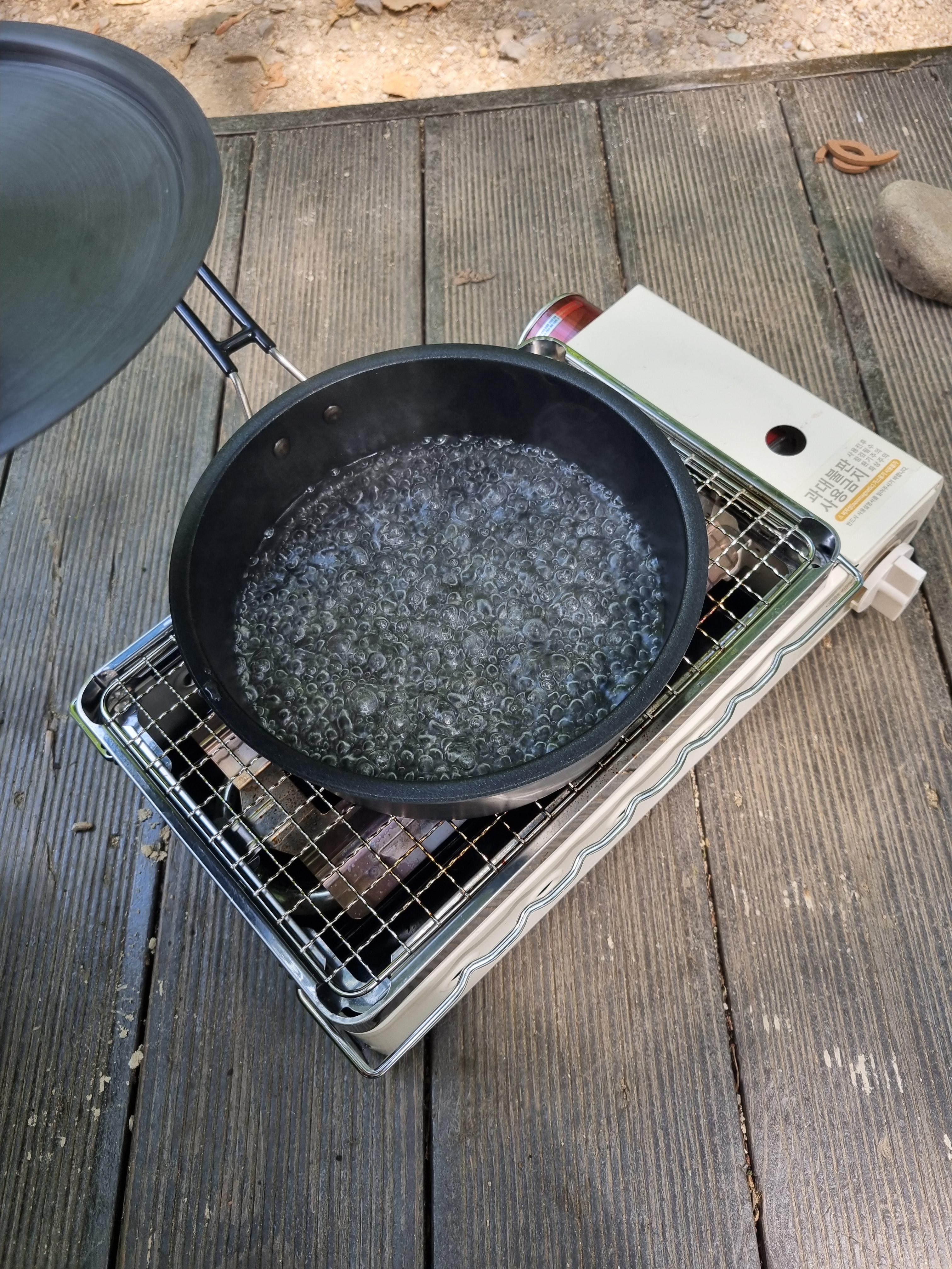 이소가스용 스토브를 들고 다니는데 이소가스가 안 나와서, 부탄가스 사용이 되는 구이바다를 대신 꺼내 들었다.