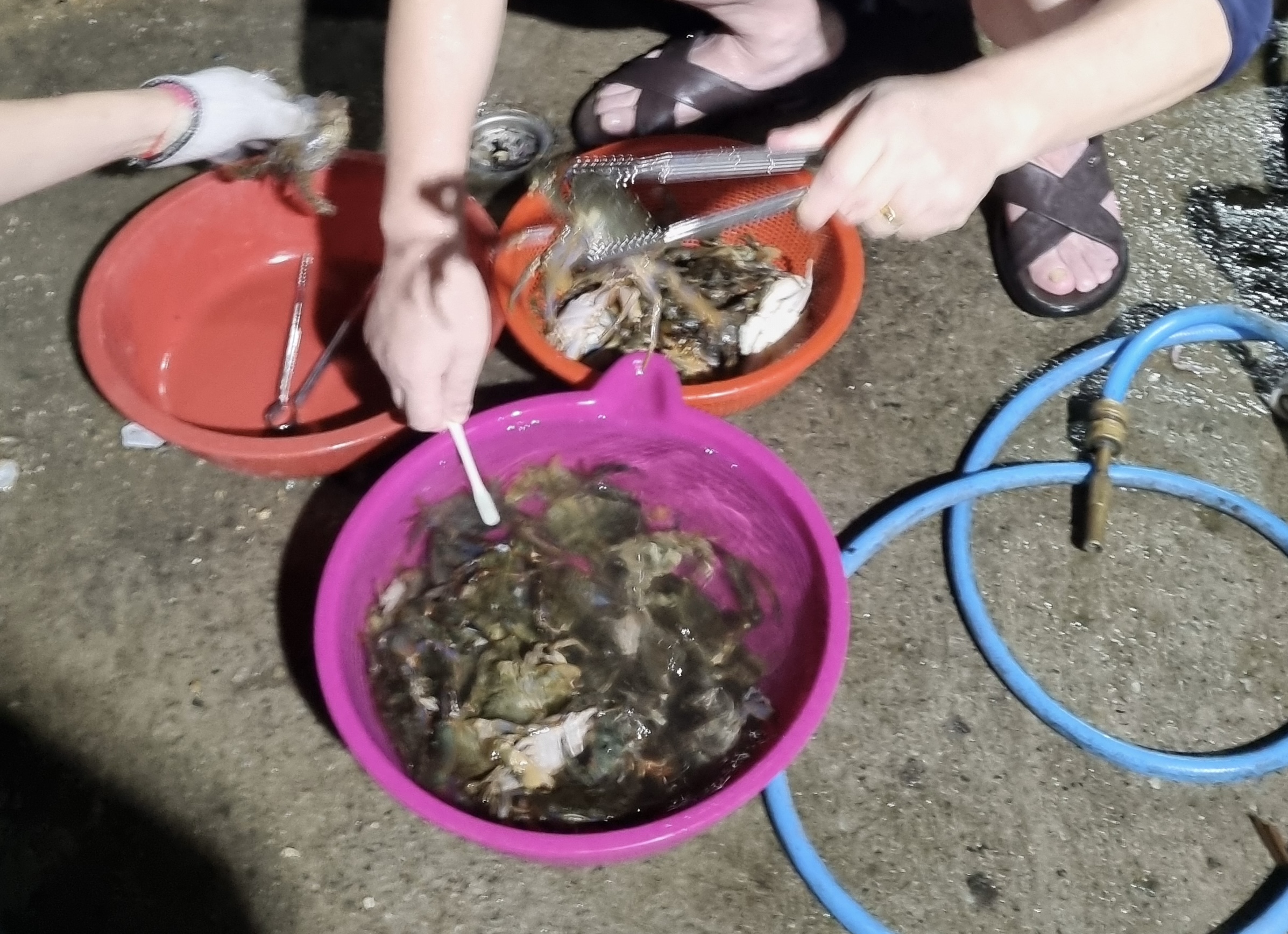 해가 떠있는 저녁에는 육안으로도 돌아다니는 게(박하지)들이 많이 보여서 도구로 마구마구 집어 올렸다.