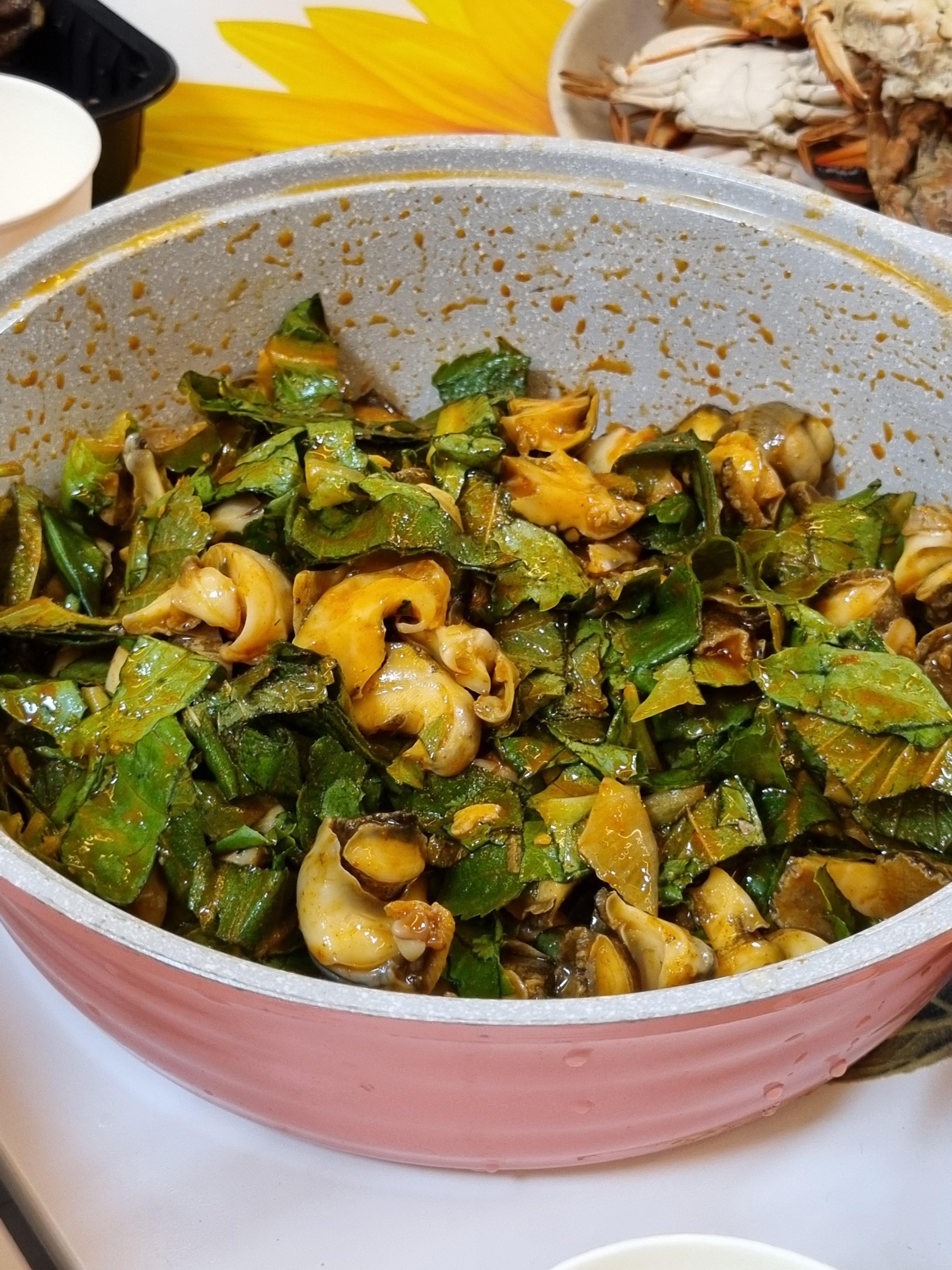게는 쪄먹는게 맛있다는 말씀에 박하지는 다 찌고, 소라는 삶아서 깻잎과 초장에 무쳐먹기로했다