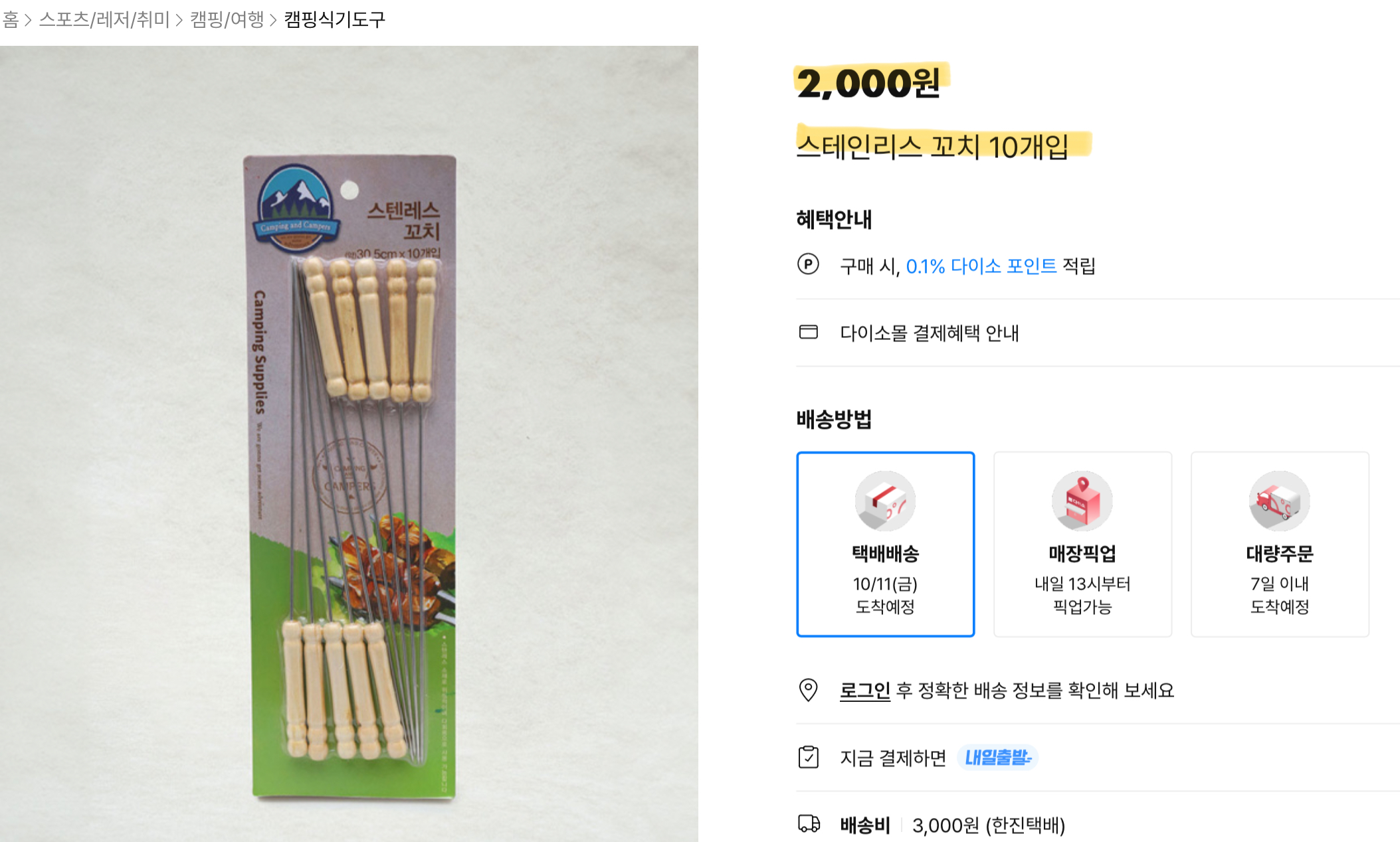 구입항목 3. 스테인리스 꼬치 10개입 (2000원)