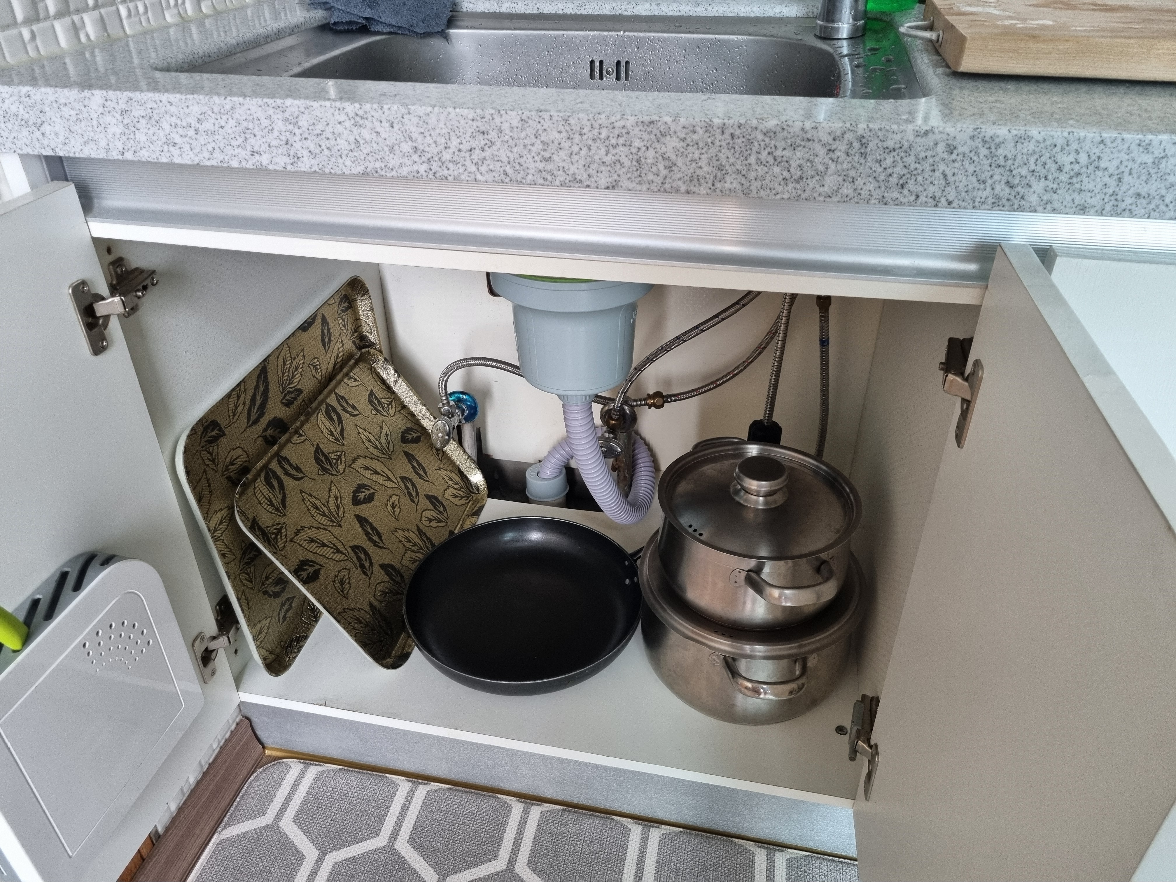 주방 쪽에는 인덕션도 있고 상하부장을 열어보면 각종 그릇과 식기류가 기본적으로 구비되어 있다.