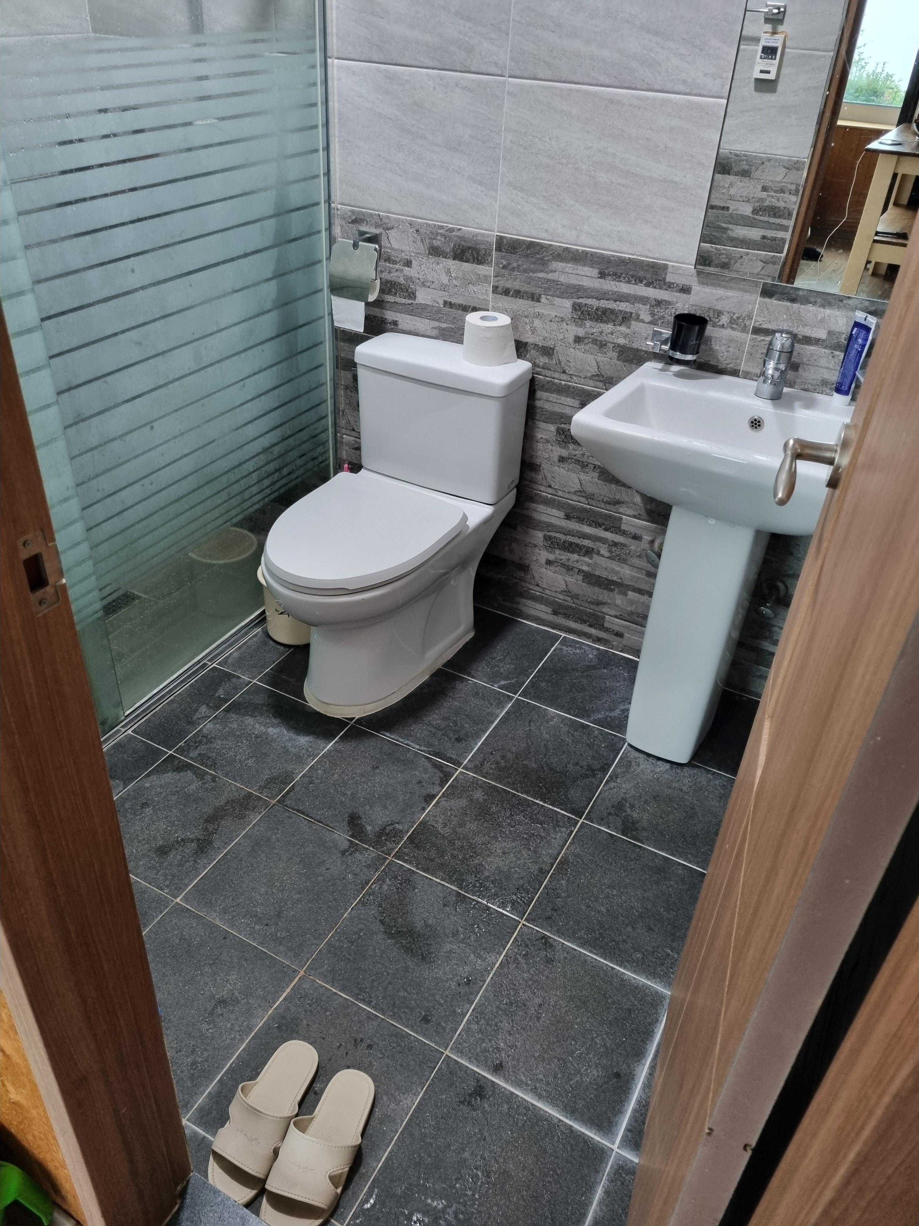 화장실도 깨끗하게 관리되고 있었고, 비누와 샴푸/린스/바디워시, 그리고 치약 정도가 있다.