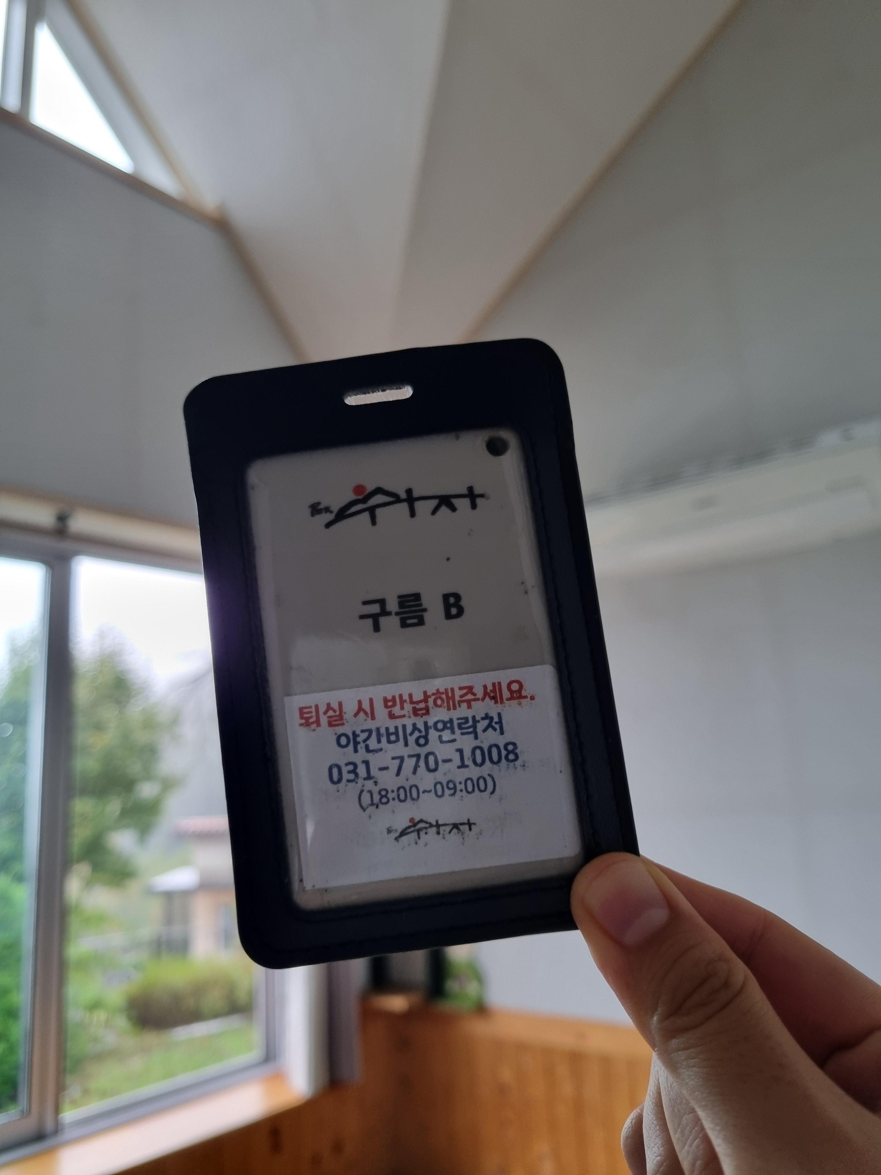 이것이 카드키. 차량 차단기 올릴 때, 그리고 방문 열 때 사용 된다.