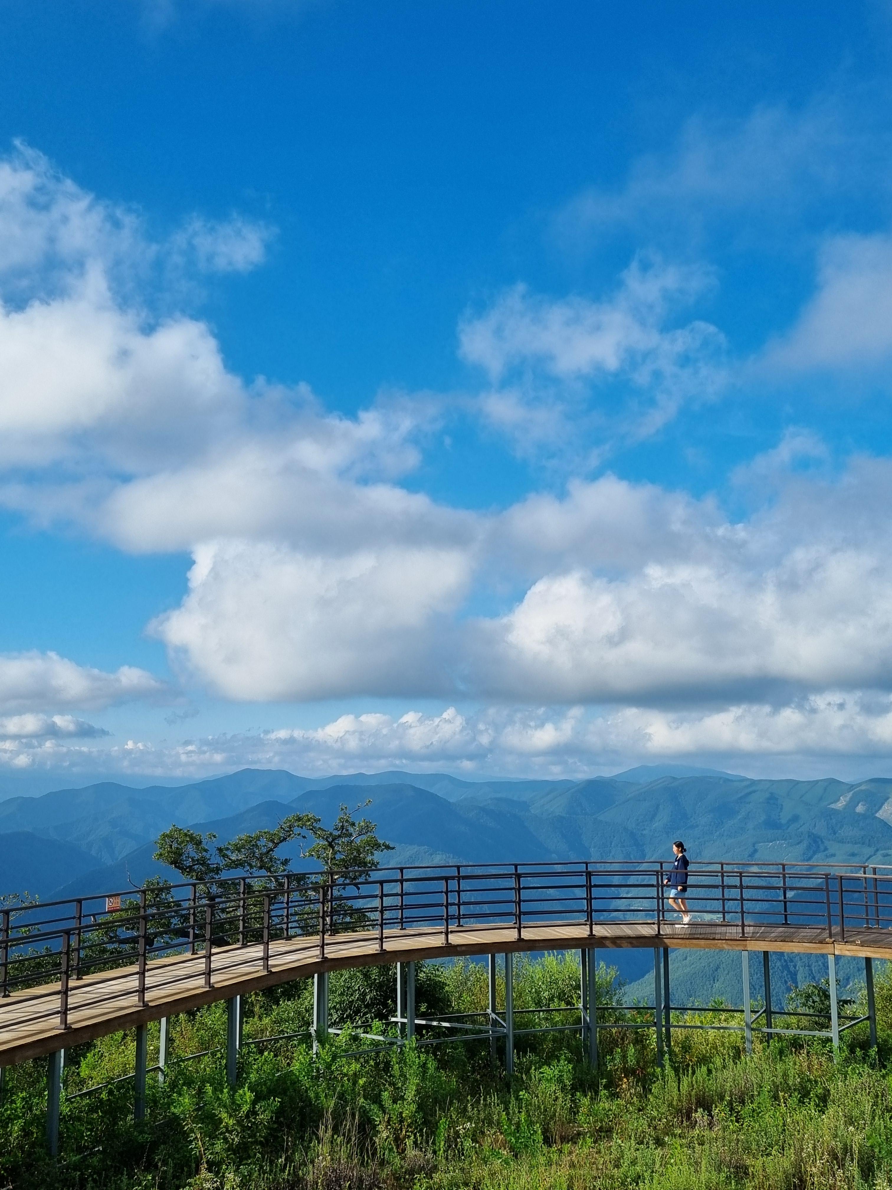 케이블카 소요시간은 20분가량이고, 도착 후에는 이렇게 탁 트인 능선을 바라보며 걸을 수 있는 산책길과 카페, 전시장이 마련되어 있다.