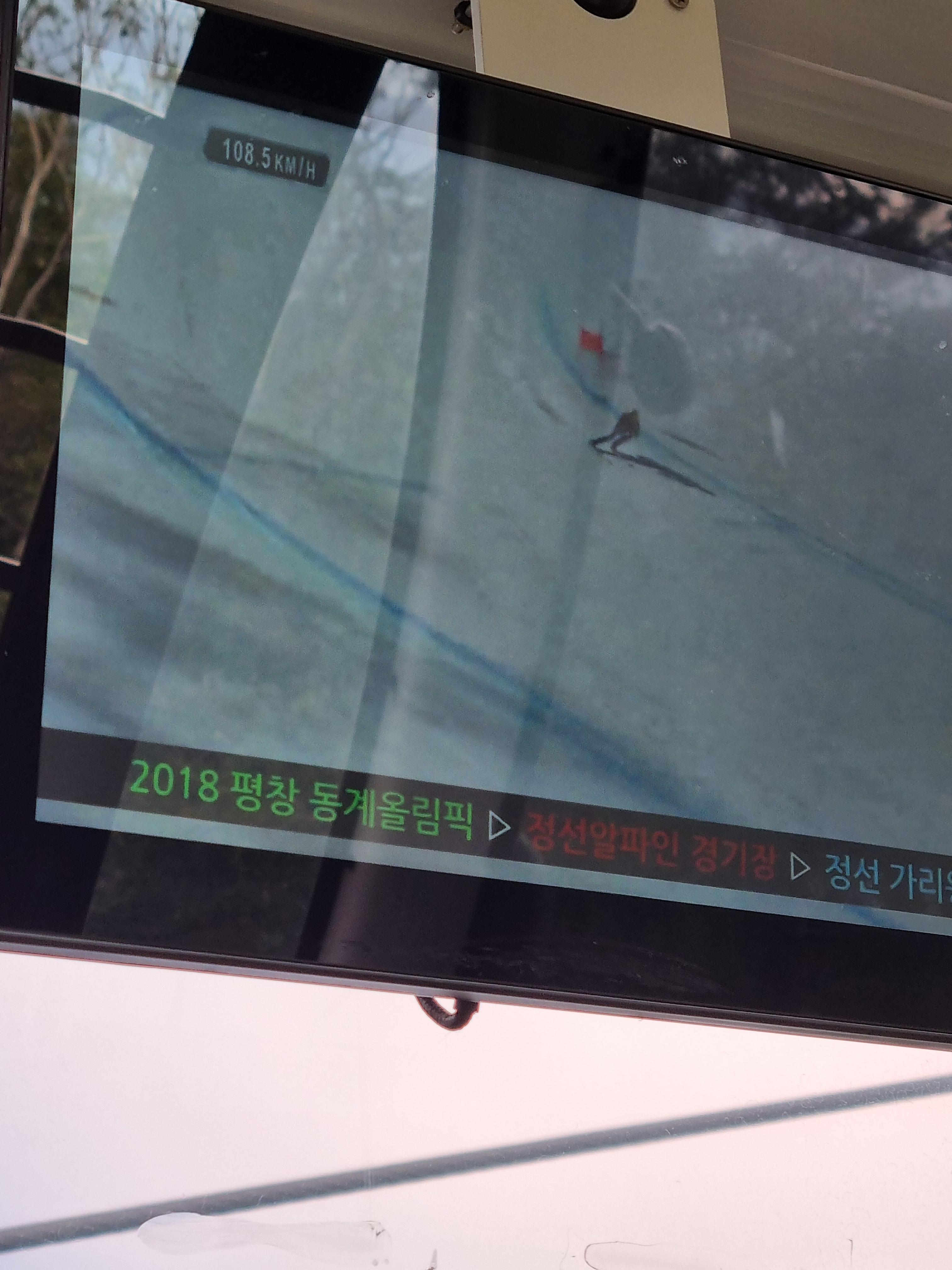 머리 위에는 평창 올림픽 스키 영상이 계속 재생된다.