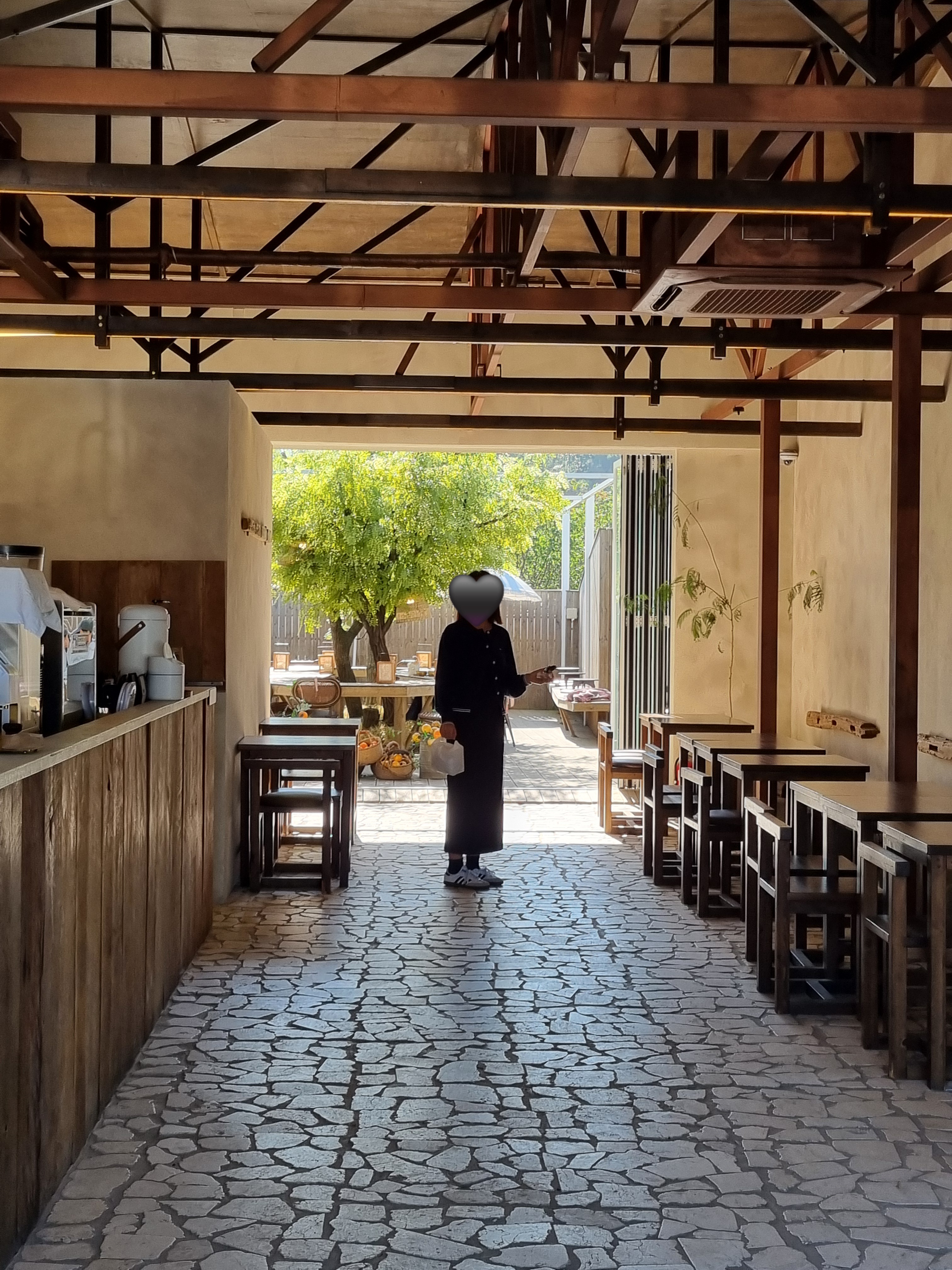 내부는 우드톤으로, 원목 가구와 토분에 심어진 화분으로 잘 꾸며져 있었다. 빵만 사서 가기에는 아쉽다.