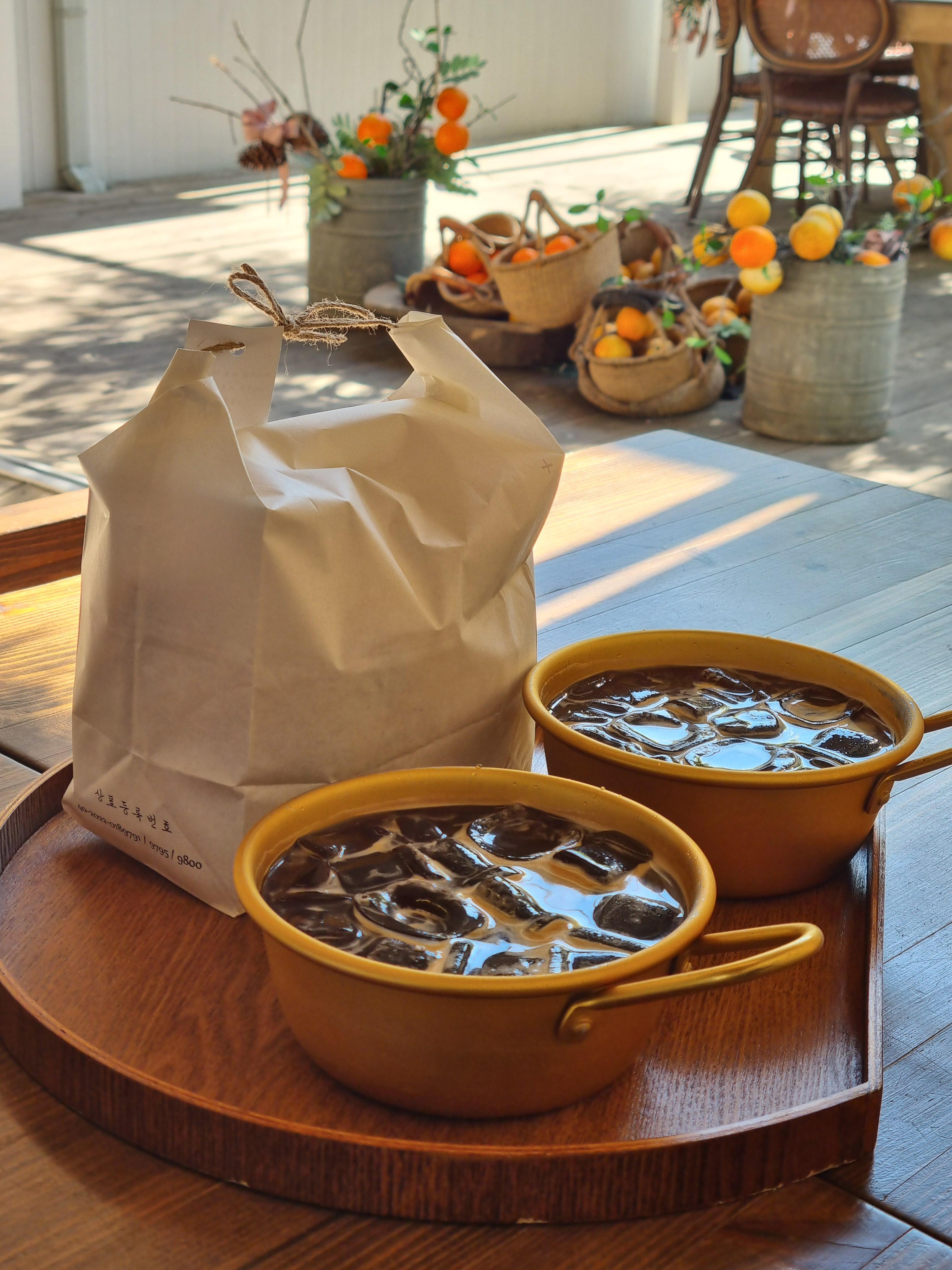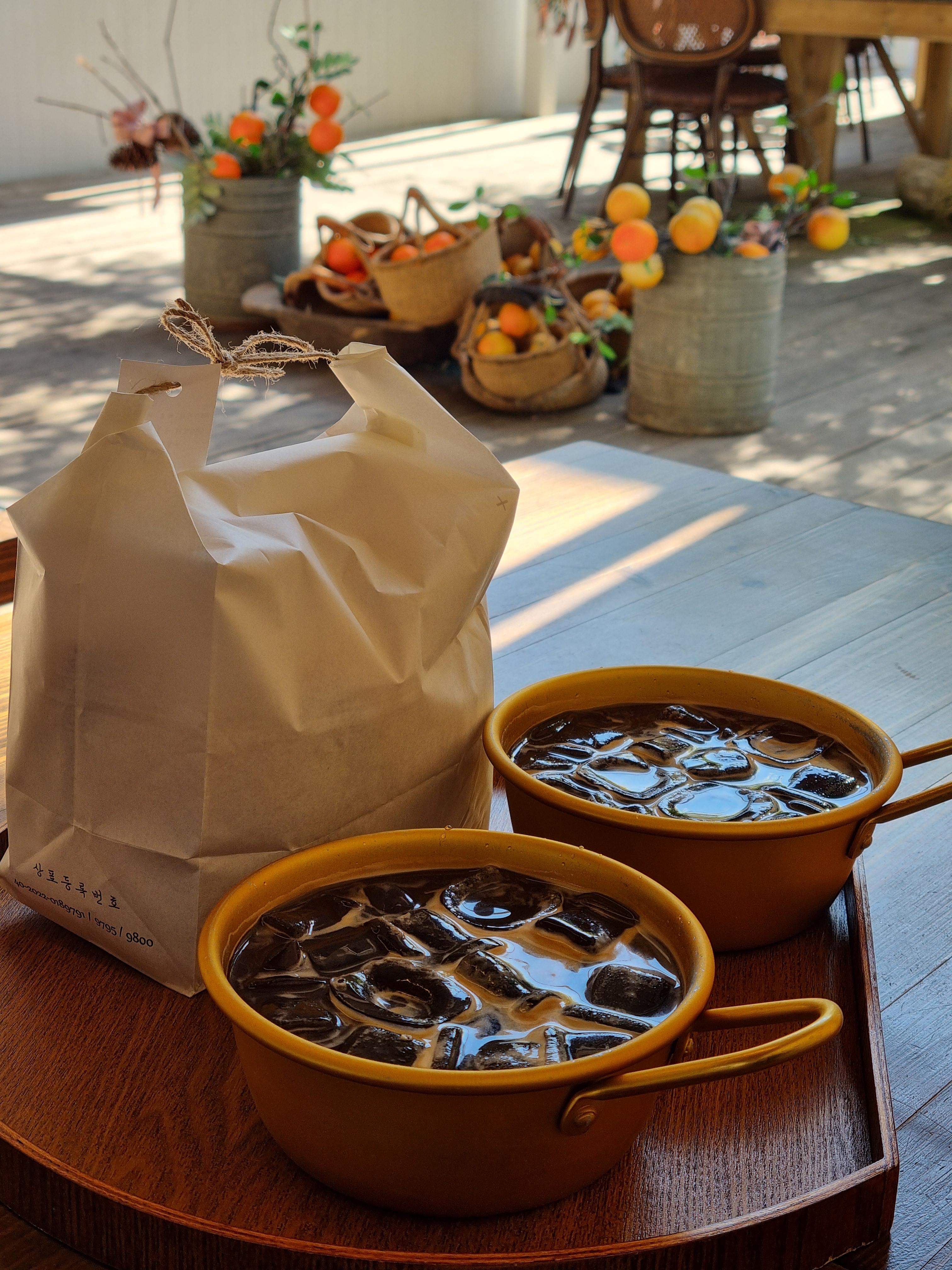 카페 컨셉이 다 좋았는데 갑자기 얼큰한 대접에 커피가 나오니까 당황스럽긴 했다. 마시기도 불편하고 여기저기 기스가 나서 커피에서 쇠맛 나는 느낌이었다.