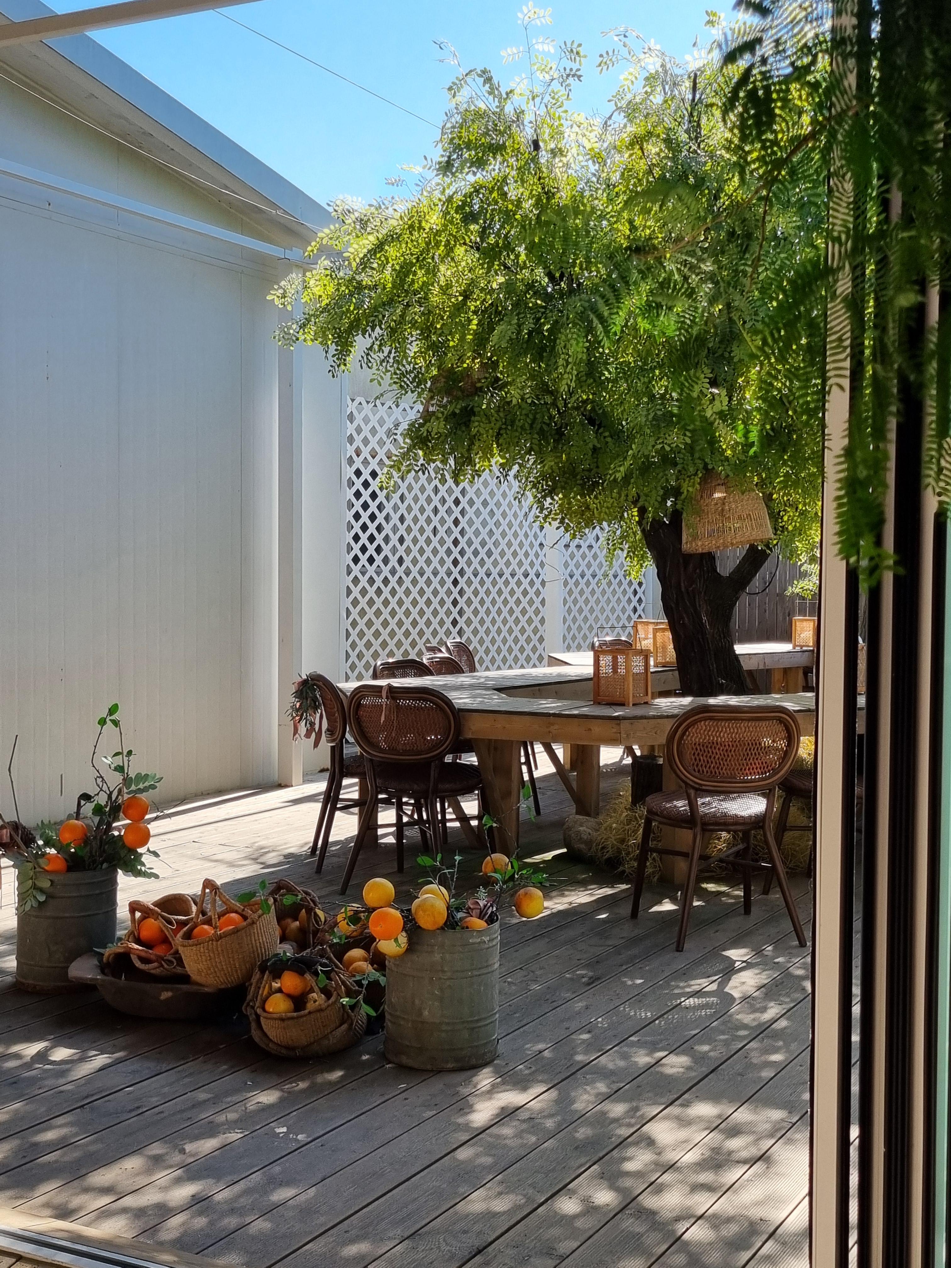 가게 중앙에는 햇빛이 들어오게 천장이 열려있고 나무가 심어져 있다.