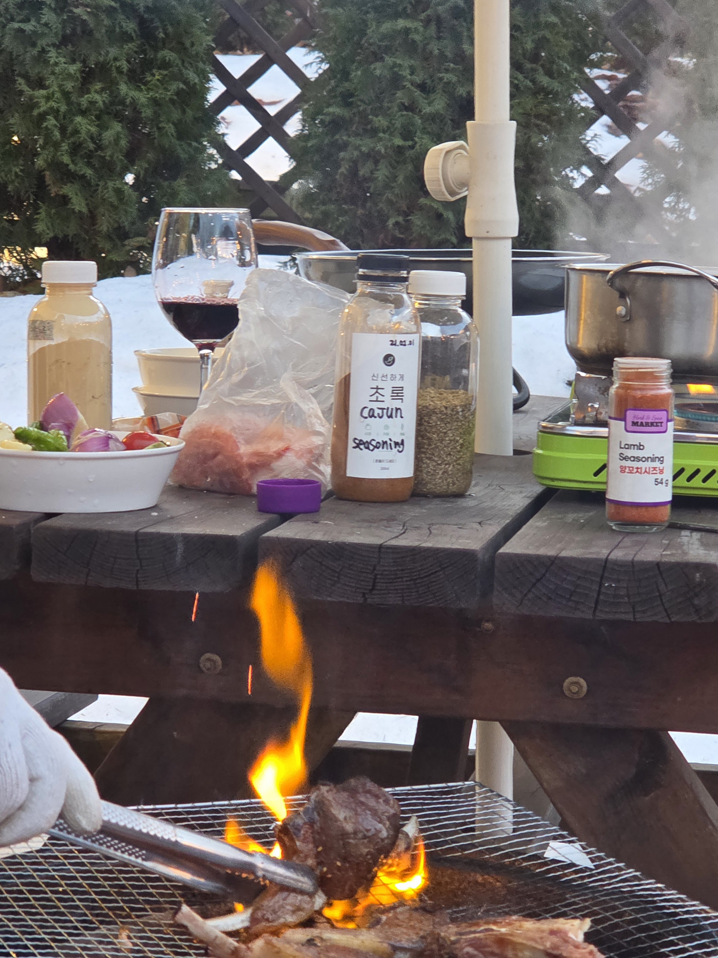 배가 고파서 체크인하면서 바비큐 숯불 바로 요청드림 (현장에서 현금 2만 원)