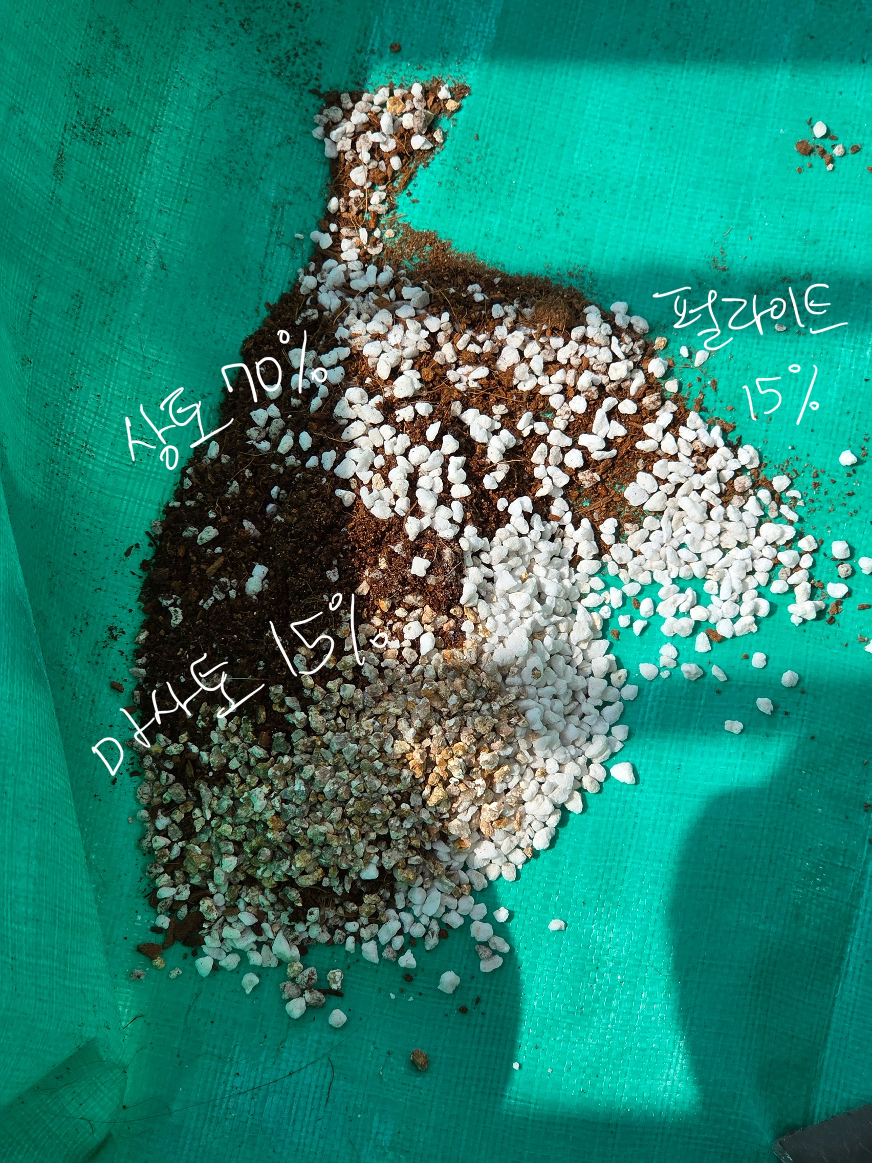 상토 70%에 펄라이트 15%, 마사토 15%