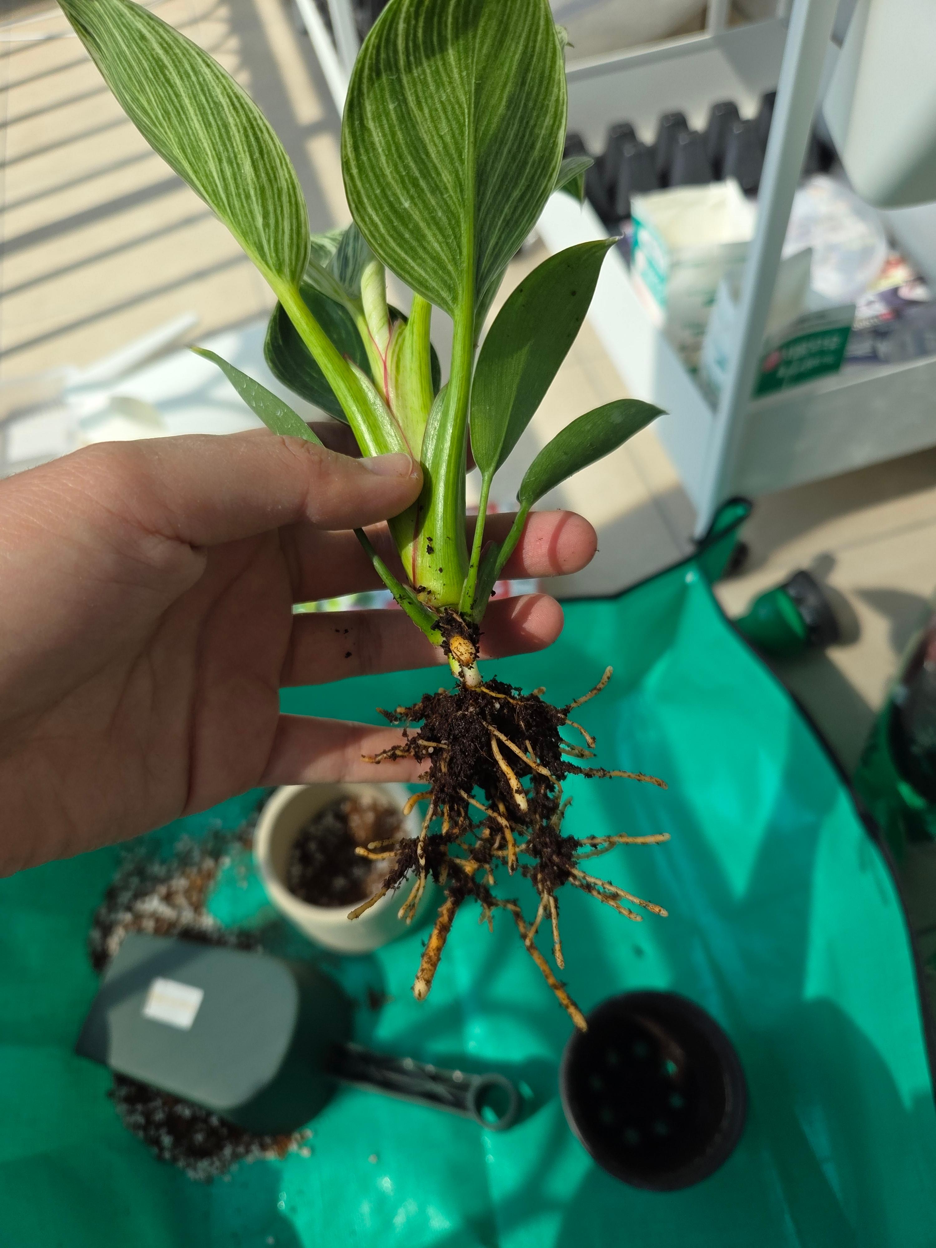 다이소에서 흙에 가볍게 심어둔 상태여서 뿌리 분리가 아주 쉬웠다.